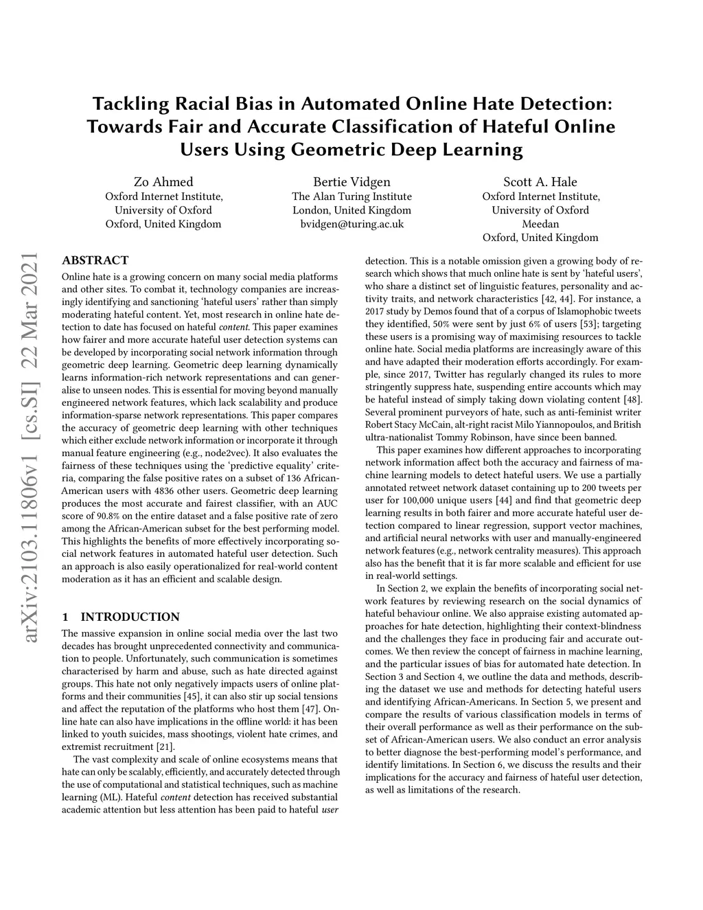 and Accurate Classification of Hateful Online Users Using Geometric Deep