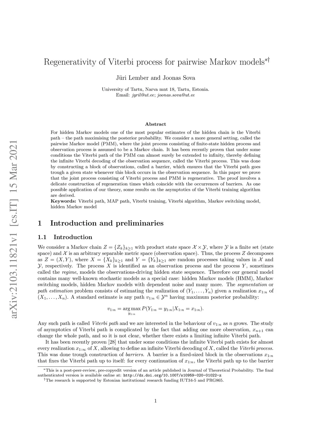 Regenerativity of Viterbi process for pairwise Markov models