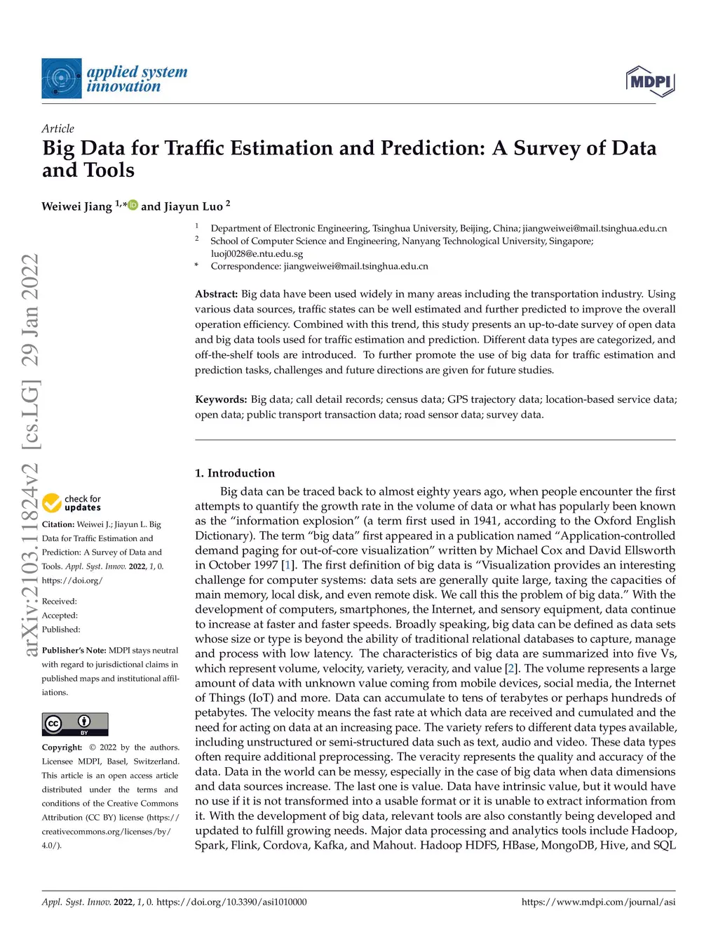 Big data has been used widely in many areas including the transportation industry. Using various data sources, traffic states can be well estimated and further predicted for improving the overall operation efficiency. Combined with this trend, this study presents an up-to-date survey of open data and big data tools used for traffic estimation and prediction. Different data types are categorized and the off-the-shelf tools are introduced. To further promote the use of big data for traffic estimation and prediction tasks, challenges and future directions are given for future studies.