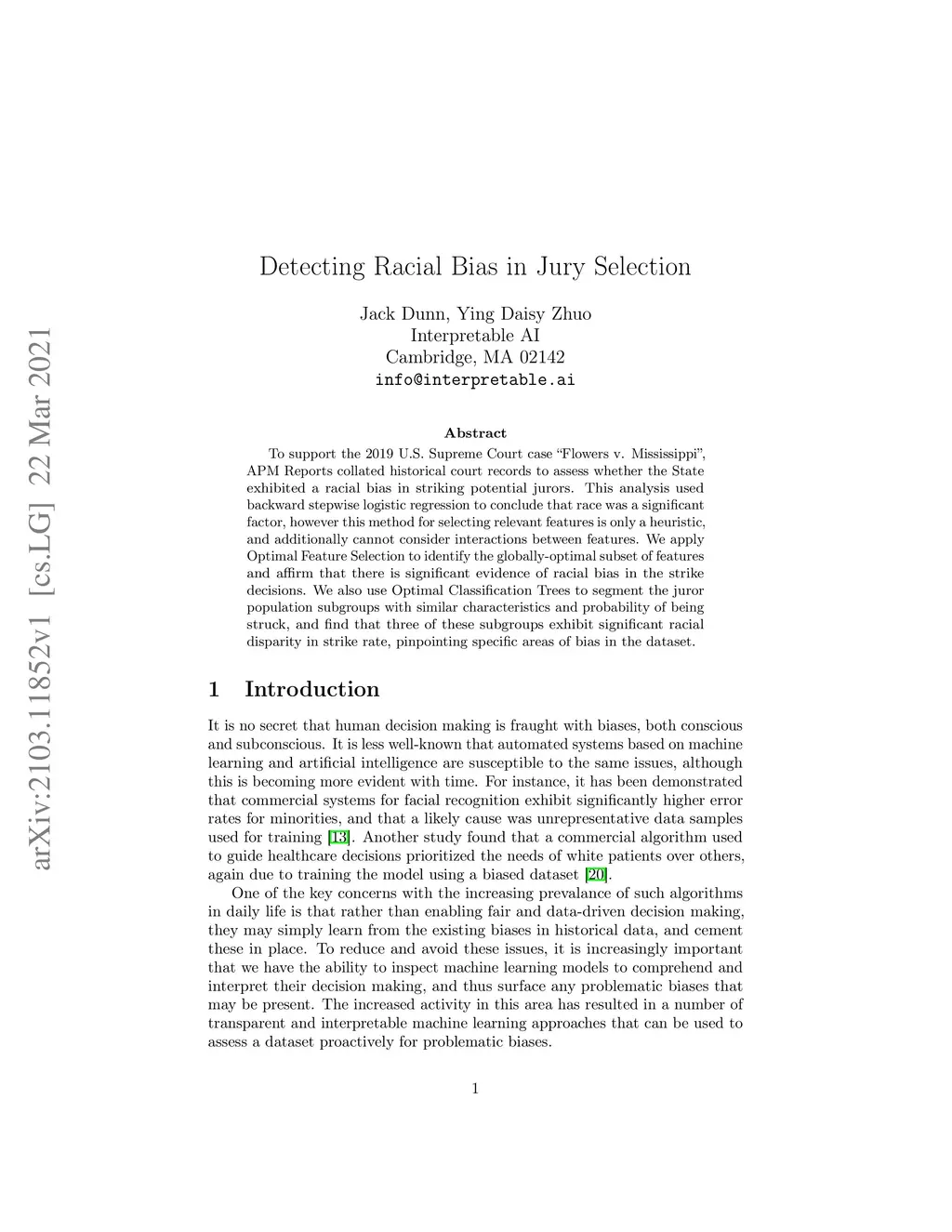 To support the 2019 U.S. Supreme Court case "Flowers v. Mississippi", APM Reports collated historical court records to assess whether the State exhibited a racial bias in striking potential jurors. This analysis used backward stepwise logistic regression to conclude that race was a significant factor, however this method for selecting relevant features is only a heuristic, and additionally cannot consider interactions between features. We apply Optimal Feature Selection to identify the globally-optimal subset of features and affirm that there is significant evidence of racial bias in the strike decisions. We also use Optimal Classification Trees to segment the juror population subgroups with similar characteristics and probability of being struck, and find that three of these subgroups exhibit significant racial disparity in strike rate, pinpointing specific areas of bias in the dataset.