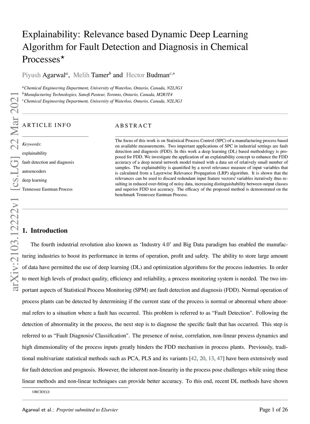 The focus of this work is on Statistical Process Control (SPC) of a manufacturing process based on available measurements. Two important applications of SPC in industrial settings are fault detection and diagnosis (FDD). In this work a deep learning (DL) based methodology is proposed for FDD. We investigate the application of an explainability concept to enhance the FDD accuracy of a deep neural network model trained with a data set of relatively small number of samples. The explainability is quantified by a novel relevance measure of input variables that is calculated from a Layerwise Relevance Propagation (LRP) algorithm. It is shown that the relevances can be used to discard redundant input feature vectors/ variables iteratively thus resulting in reduced over-fitting of noisy data, increasing distinguishability between output classes and superior FDD test accuracy. The efficacy of the proposed method is demonstrated on the benchmark Tennessee Eastman Process.