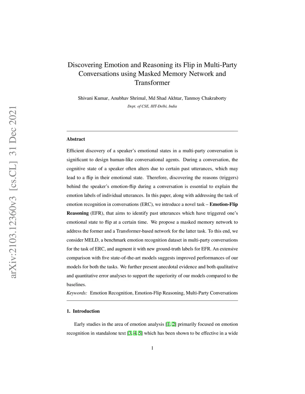 Efficient discovery of a speaker's emotional states in a multi-party conversation is significant to design human-like conversational agents. During a conversation, the cognitive state of a speaker often alters due to certain past utterances, which may lead to a flip in their emotional state. Therefore, discovering the reasons (triggers) behind the speaker's emotion-flip during a conversation is essential to explain the emotion labels of individual utterances. In this paper, along with addressing the task of emotion recognition in conversations (ERC), we introduce a novel task - Emotion-Flip Reasoning (EFR), that aims to identify past utterances which have triggered one's emotional state to flip at a certain time. We propose a masked memory network to address the former and a Transformer-based network for the latter task. To this end, we consider MELD, a benchmark emotion recognition dataset in multi-party conversations for the task of ERC, and augment it with new ground-truth labels for EFR. An extensive comparison with five state-of-the-art models suggests improved performances of our models for both tasks. We further present anecdotal evidence and both qualitative and quantitative error analyses to support the superiority of our models compared to the baselines.