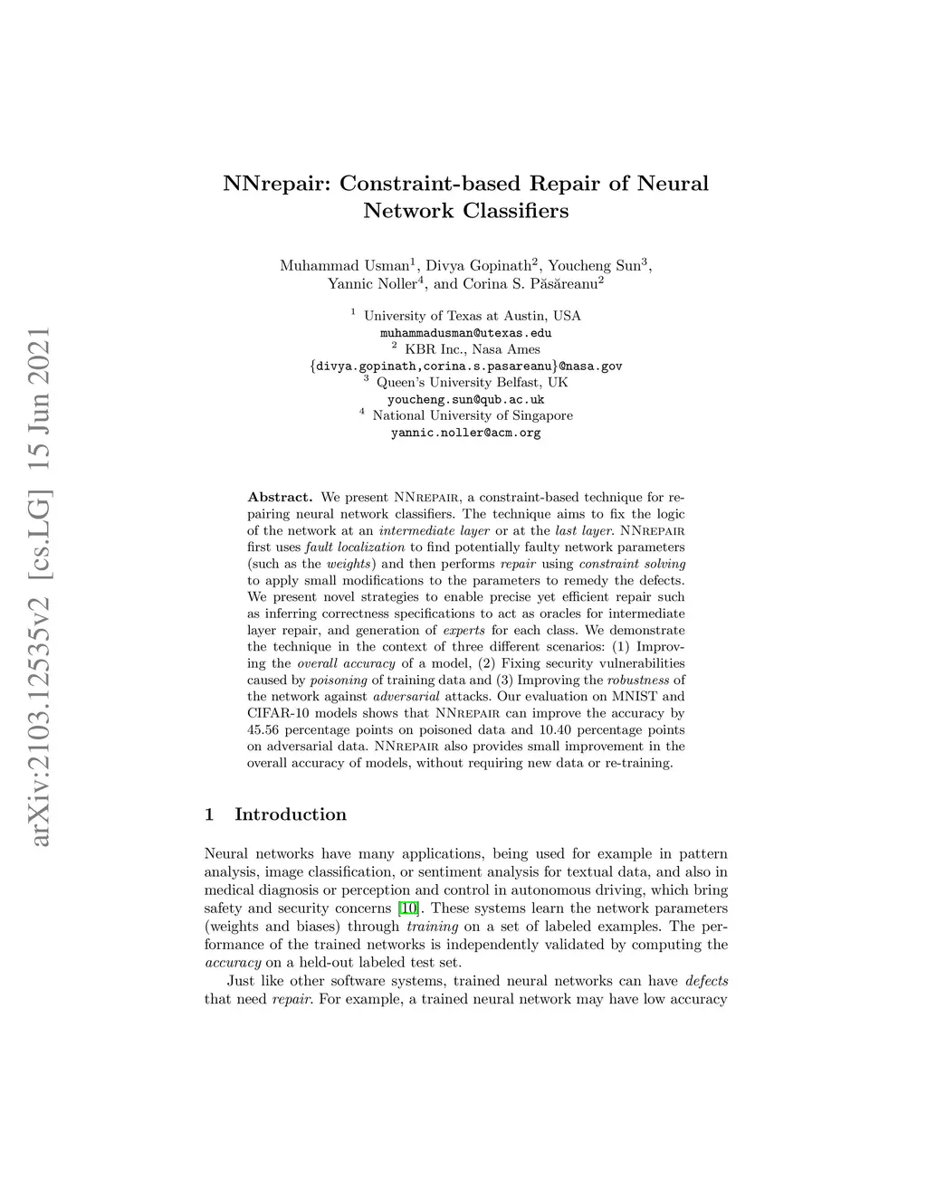 NNrepair: Constraint-based Repair of Neural Network Classifiers