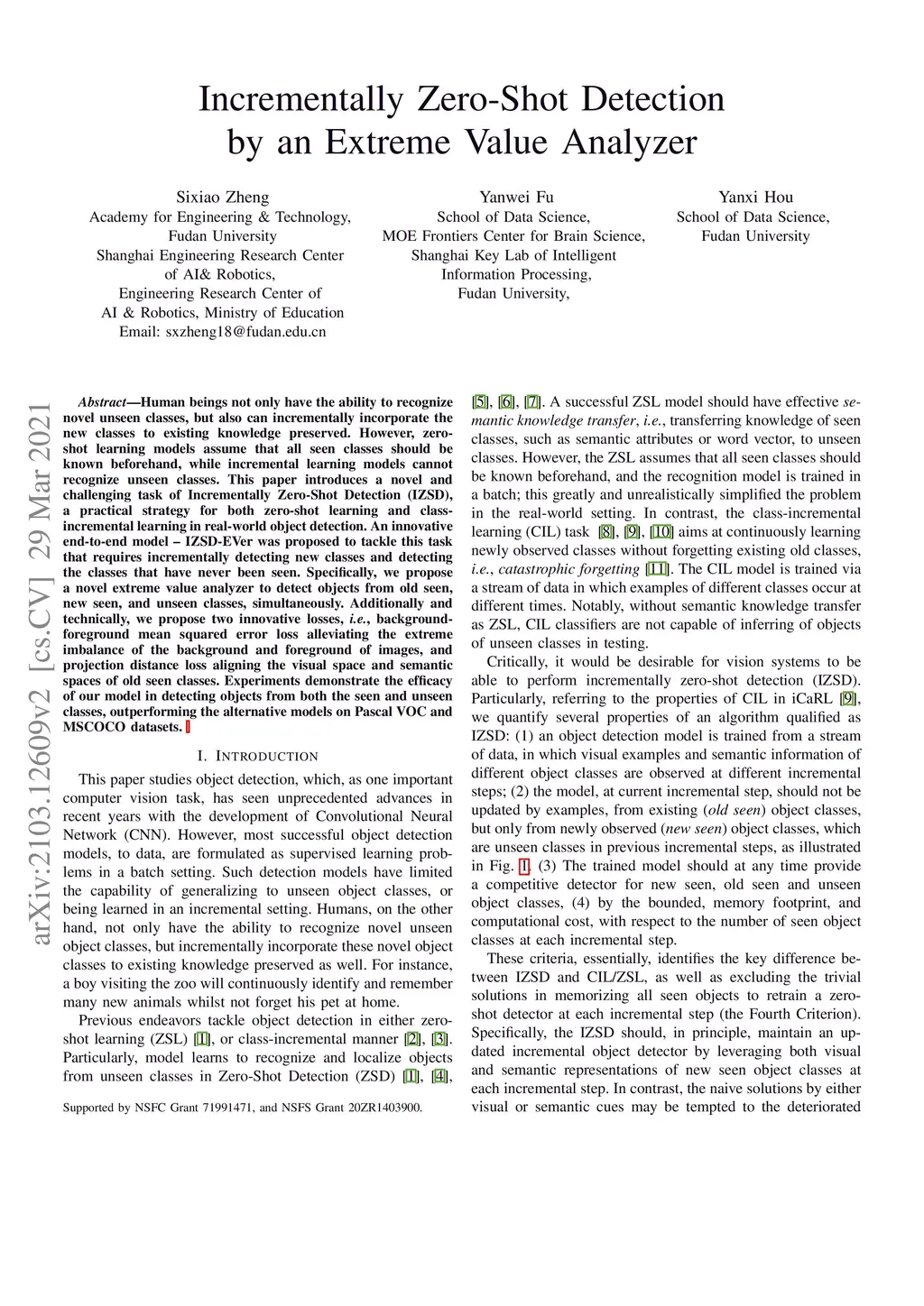Incrementally Zero-Shot Detection by an Extreme Value Analyzer