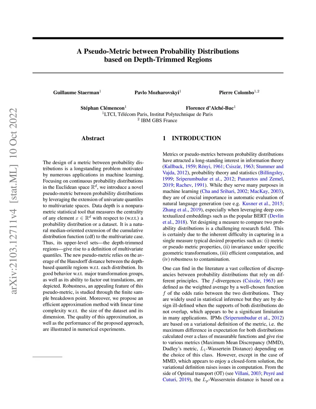A Pseudo-Metric between Probability Distributions based on Depth-Trimmed