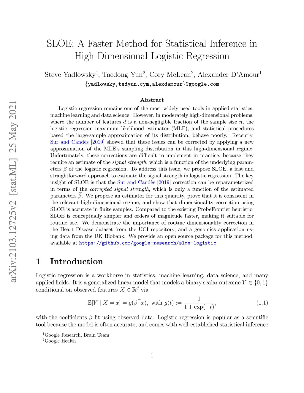 SLOE: A Faster Method for Statistical Inference in High-Dimensional