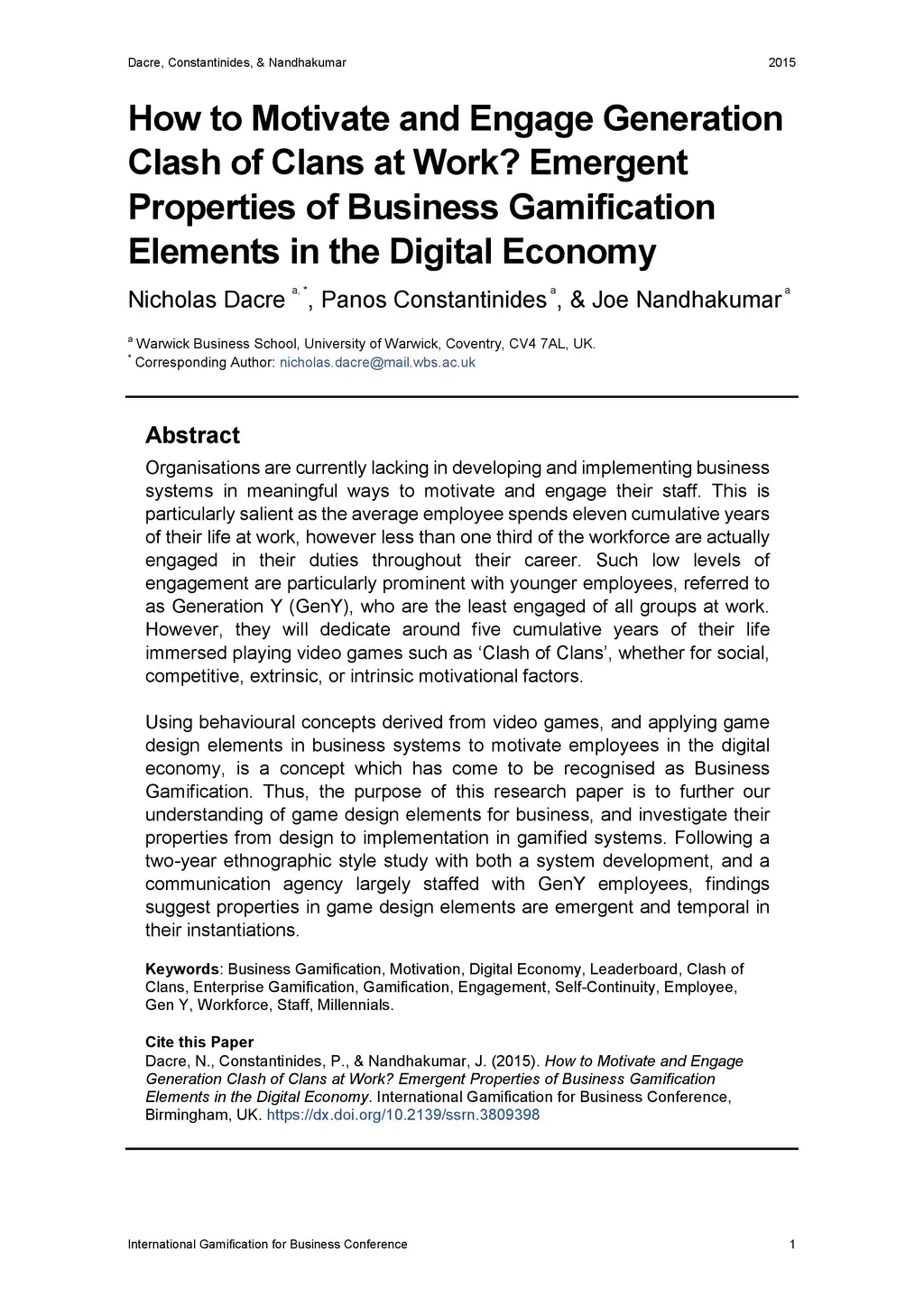 How to Motivate and Engage Generation Clash of Clans at Work? Emergent