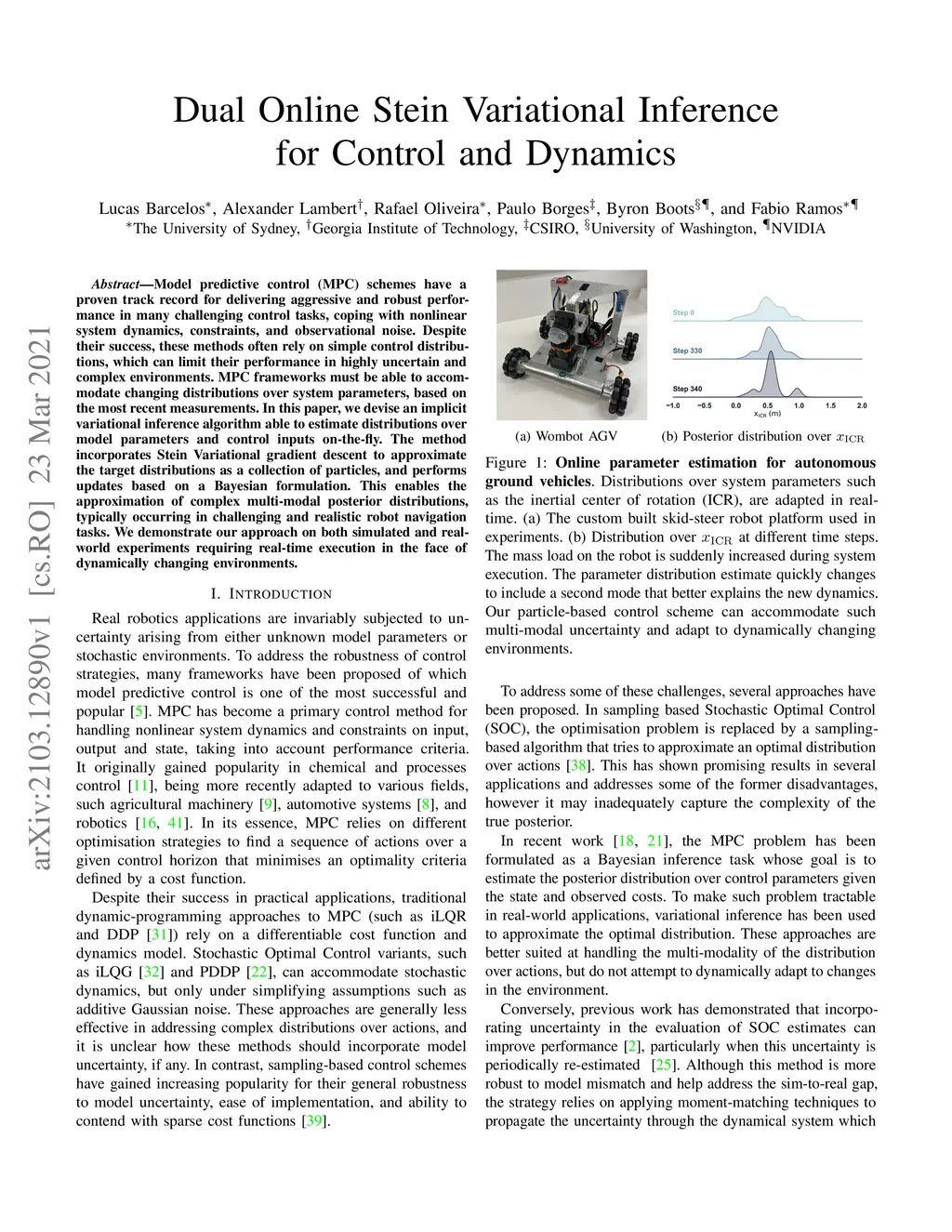 Dual Online Stein Variational Inference for Control and Dynamics