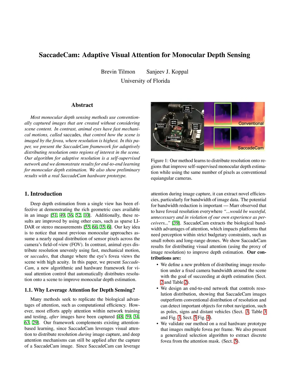 SaccadeCam: Adaptive Visual Attention for Monocular Depth Sensing