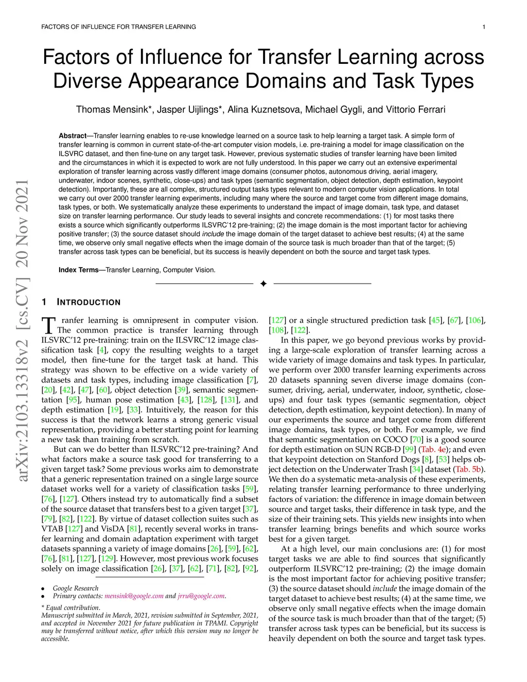 Factors of Influence for Transfer Learning across Diverse Appearance