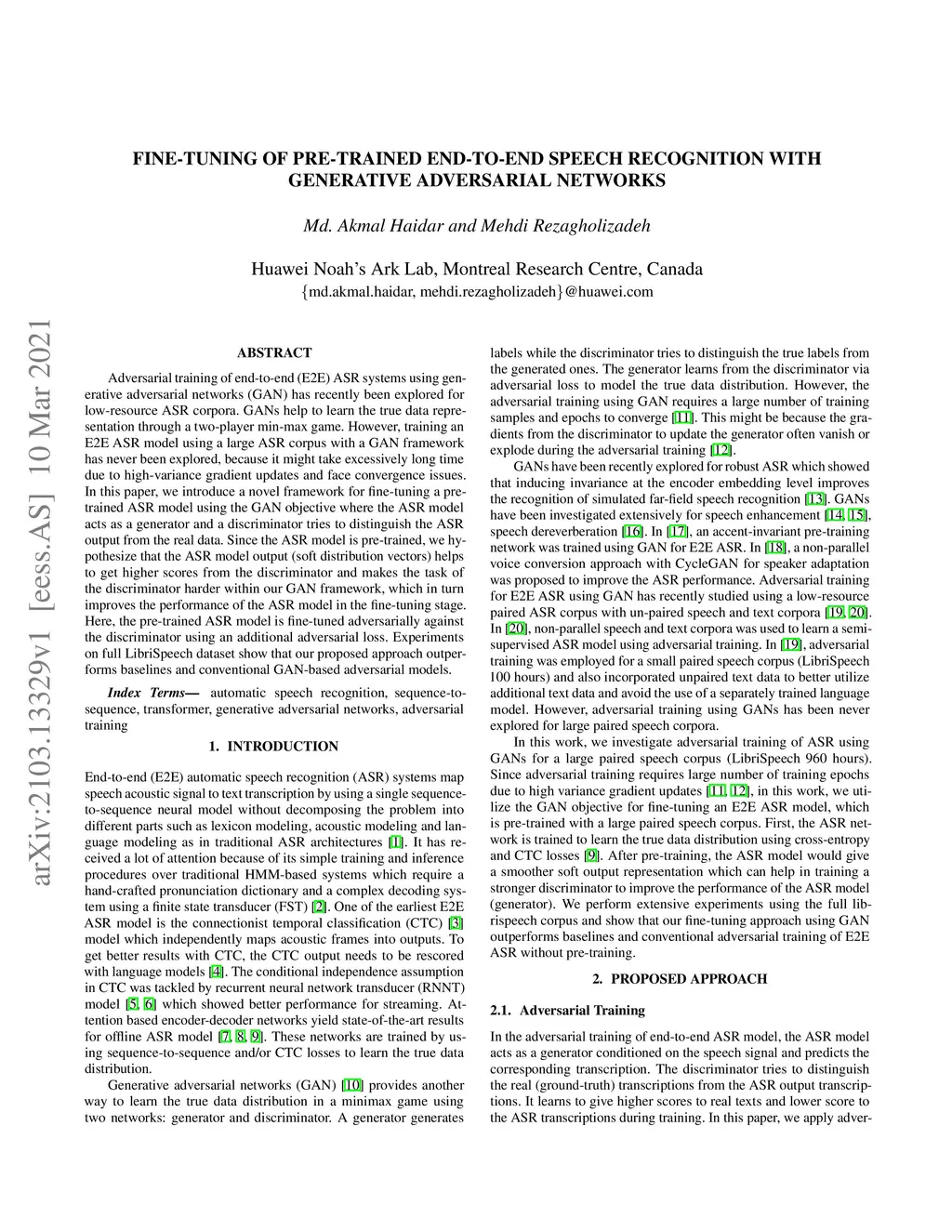 Adversarial training of end-to-end (E2E) ASR systems using generative adversarial networks (GAN) has recently been explored for low-resource ASR corpora. GANs help to learn the true data representation through a two-player min-max game. However, training an E2E ASR model using a large ASR corpus with a GAN framework has never been explored, because it might take excessively long time due to high-variance gradient updates and face convergence issues. In this paper, we introduce a novel framework for fine-tuning a pre-trained ASR model using the GAN objective where the ASR model acts as a generator and a discriminator tries to distinguish the ASR output from the real data. Since the ASR model is pre-trained, we hypothesize that the ASR model output (soft distribution vectors) helps to get higher scores from the discriminator and makes the task of the discriminator harder within our GAN framework, which in turn improves the performance of the ASR model in the fine-tuning stage. Here, the pre-trained ASR model is fine-tuned adversarially against the discriminator using an additional adversarial loss. Experiments on full LibriSpeech dataset show that our proposed approach outperforms baselines and conventional GAN-based adversarial models.