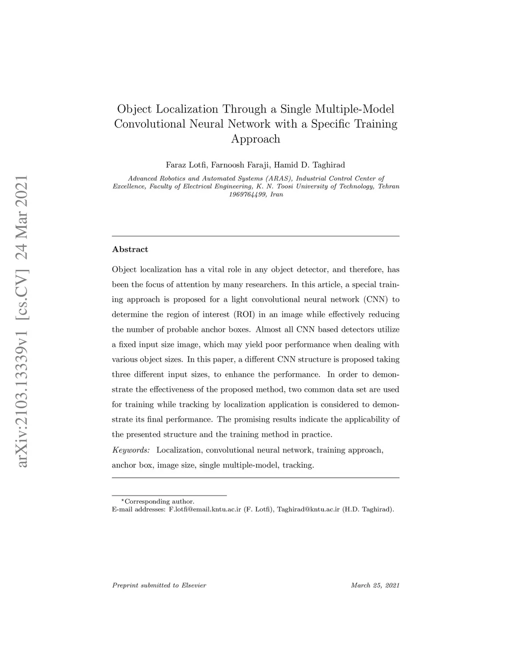 Object localization has a vital role in any object detector, and therefore, has been the focus of attention by many researchers. In this article, a special training approach is proposed for a light convolutional neural network (CNN) to determine the region of interest (ROI) in an image while effectively reducing the number of probable anchor boxes. Almost all CNN-based detectors utilize a fixed input size image, which may yield poor performance when dealing with various object sizes. In this paper, a different CNN structure is proposed taking three different input sizes, to enhance the performance. In order to demonstrate the effectiveness of the proposed method, two common data set are used for training while tracking by localization application is considered to demonstrate its final performance. The promising results indicate the applicability of the presented structure and the training method in practice.