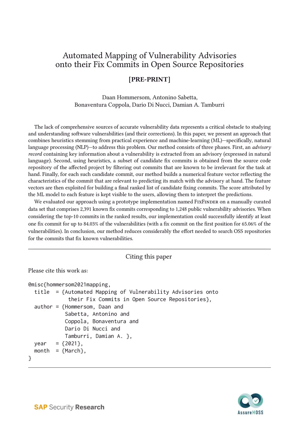 Automated Mapping of Vulnerability Advisories onto their Fix Commits in