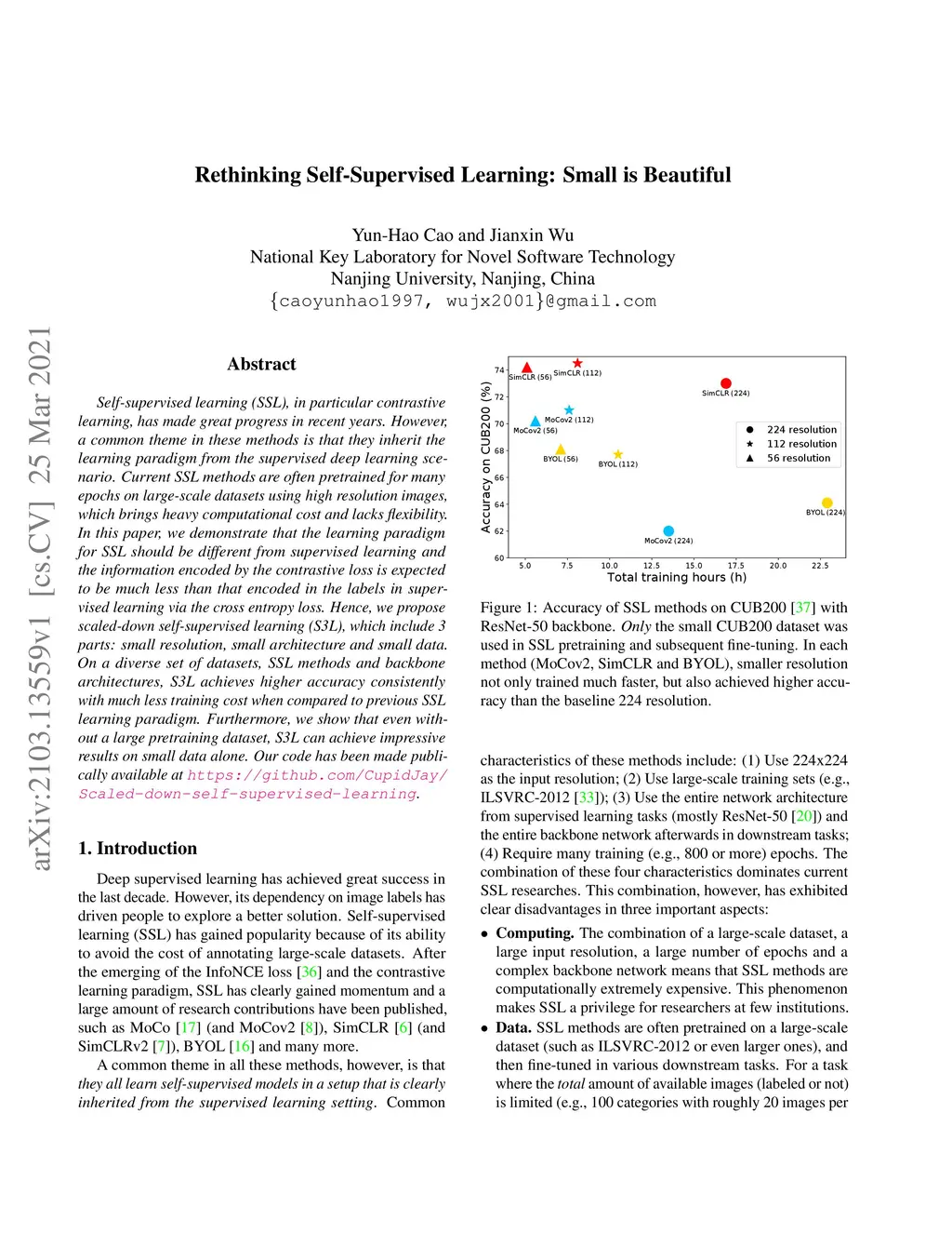 Rethinking Self-Supervised Learning: Small is Beautiful