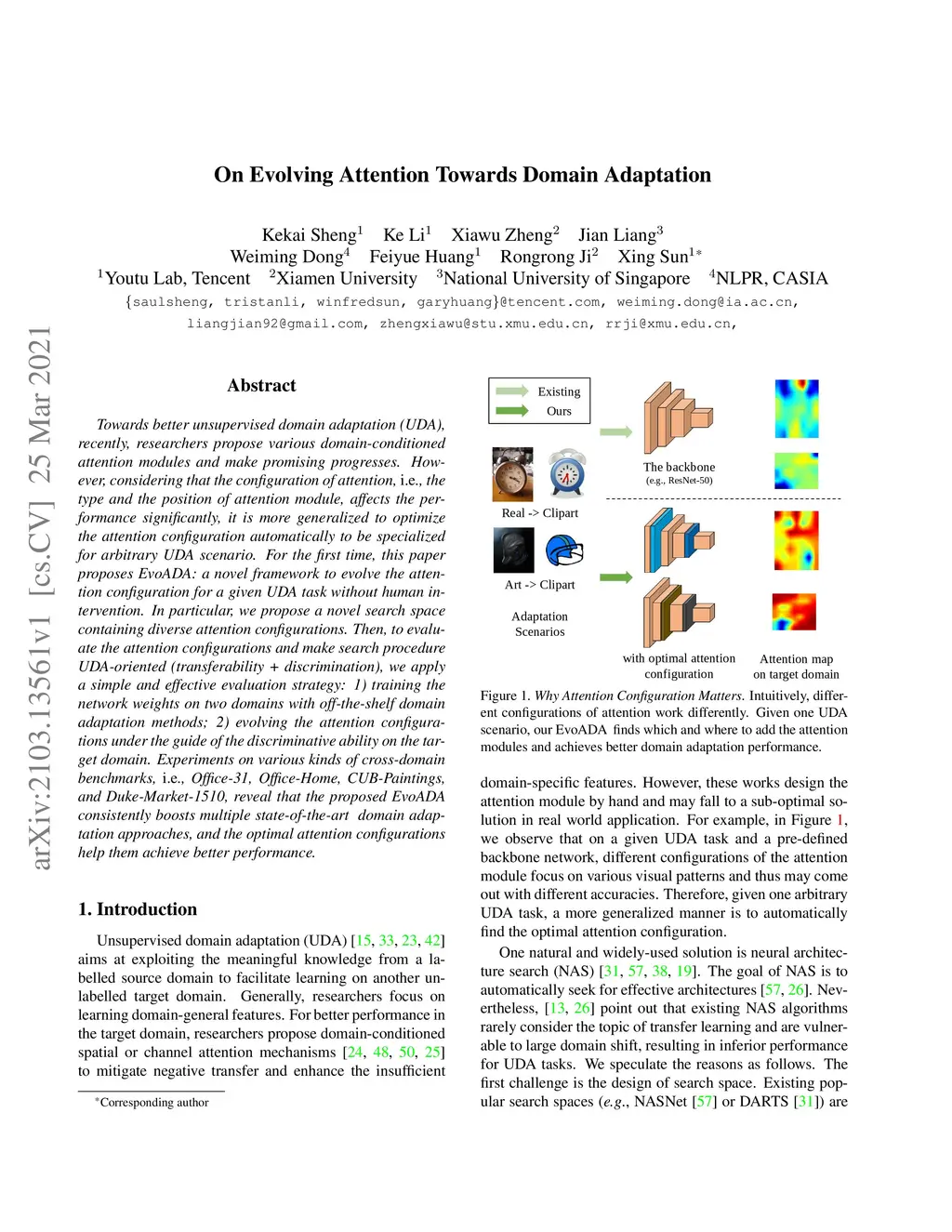 Towards better unsupervised domain adaptation (UDA). Recently, researchers propose various domain-conditioned attention modules and make promising progresses. However, considering that the configuration of attention, i.e., the type and the position of attention module, affects the performance significantly, it is more generalized to optimize the attention configuration automatically to be specialized for arbitrary UDA scenario. For the first time, this paper proposes EvoADA: a novel framework to evolve the attention configuration for a given UDA task without human intervention. In particular, we propose a novel search space containing diverse attention configurations. Then, to evaluate the attention configurations and make search procedure UDA-oriented (transferability + discrimination), we apply a simple and effective evaluation strategy: 1) training the network weights on two domains with off-the-shelf domain adaptation methods; 2) evolving the attention configurations under the guide of the discriminative ability on the target domain. Experiments on various kinds of cross-domain benchmarks, i.e., Office-31, Office-Home, CUB-Paintings, and Duke-Market-1510, reveal that the proposed EvoADA consistently boosts multiple state-of-the-art domain adaptation approaches, and the optimal attention configurations help them achieve better performance.