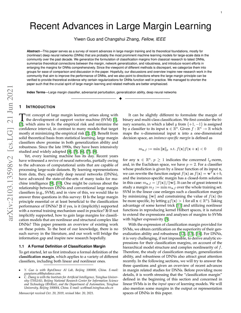 Recent Advances in Large Margin Learning