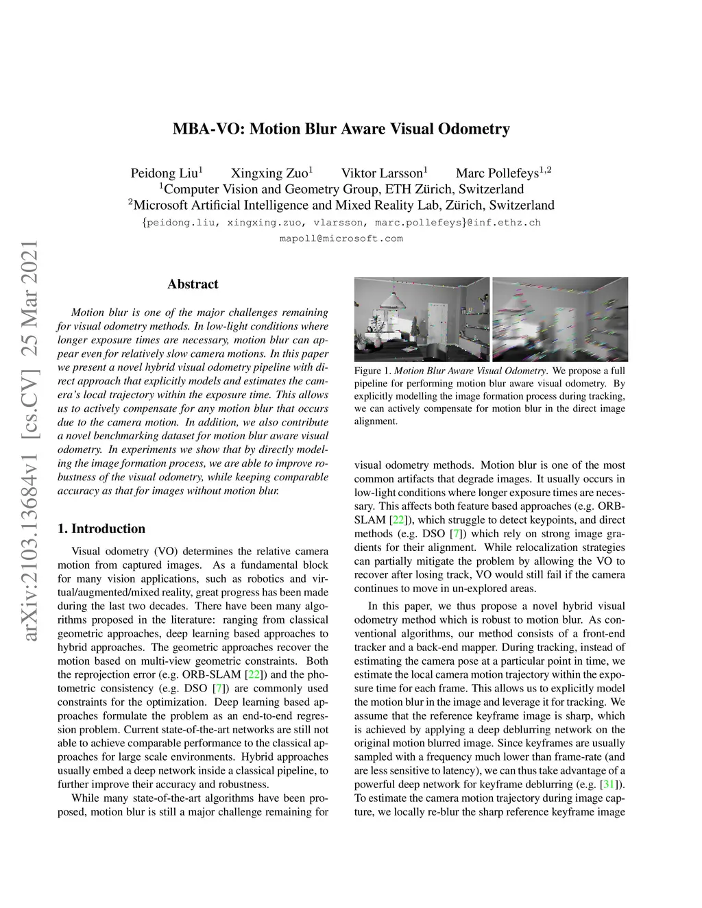 MBA-VO: Motion Blur Aware Visual Odometry