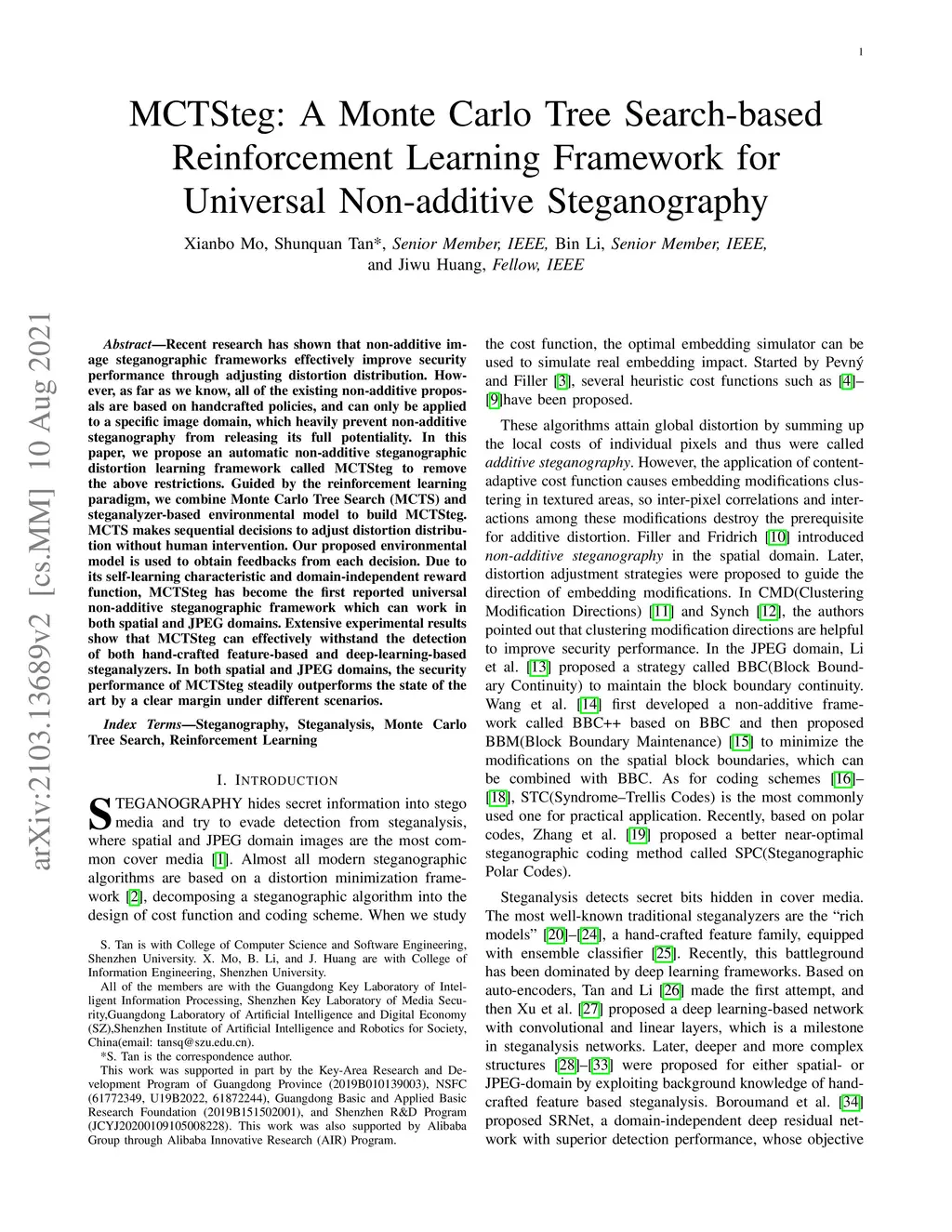 MCTSteg: A Monte Carlo Tree Search-based Reinforcement Learning