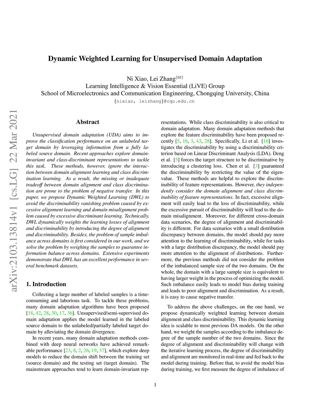 Dynamic Weighted Learning for Unsupervised Domain Adaptation