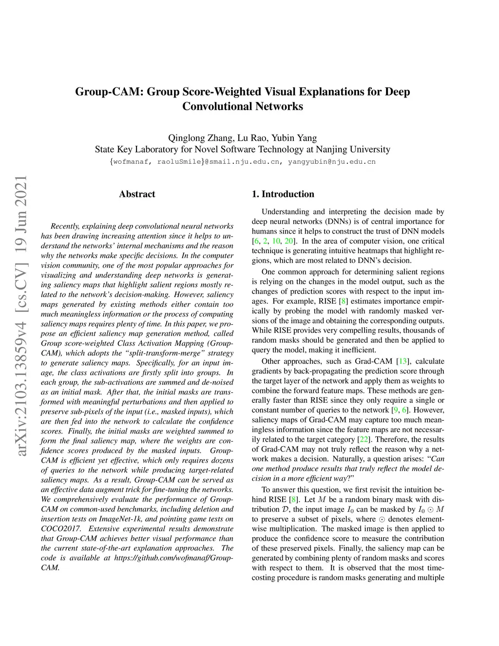 Group-CAM: Group Score-Weighted Visual Explanations for Deep