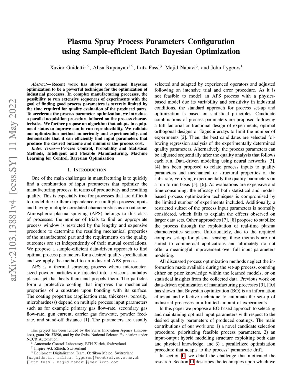 Plasma Spray Process Parameters Configuration using Sample-efficient