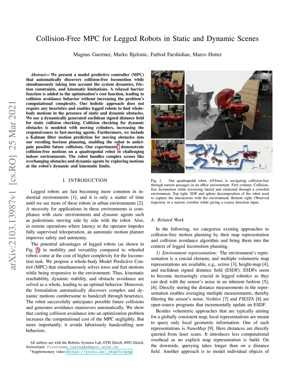 Collision-Free MPC for Legged Robots in Static and Dynamic Scenes