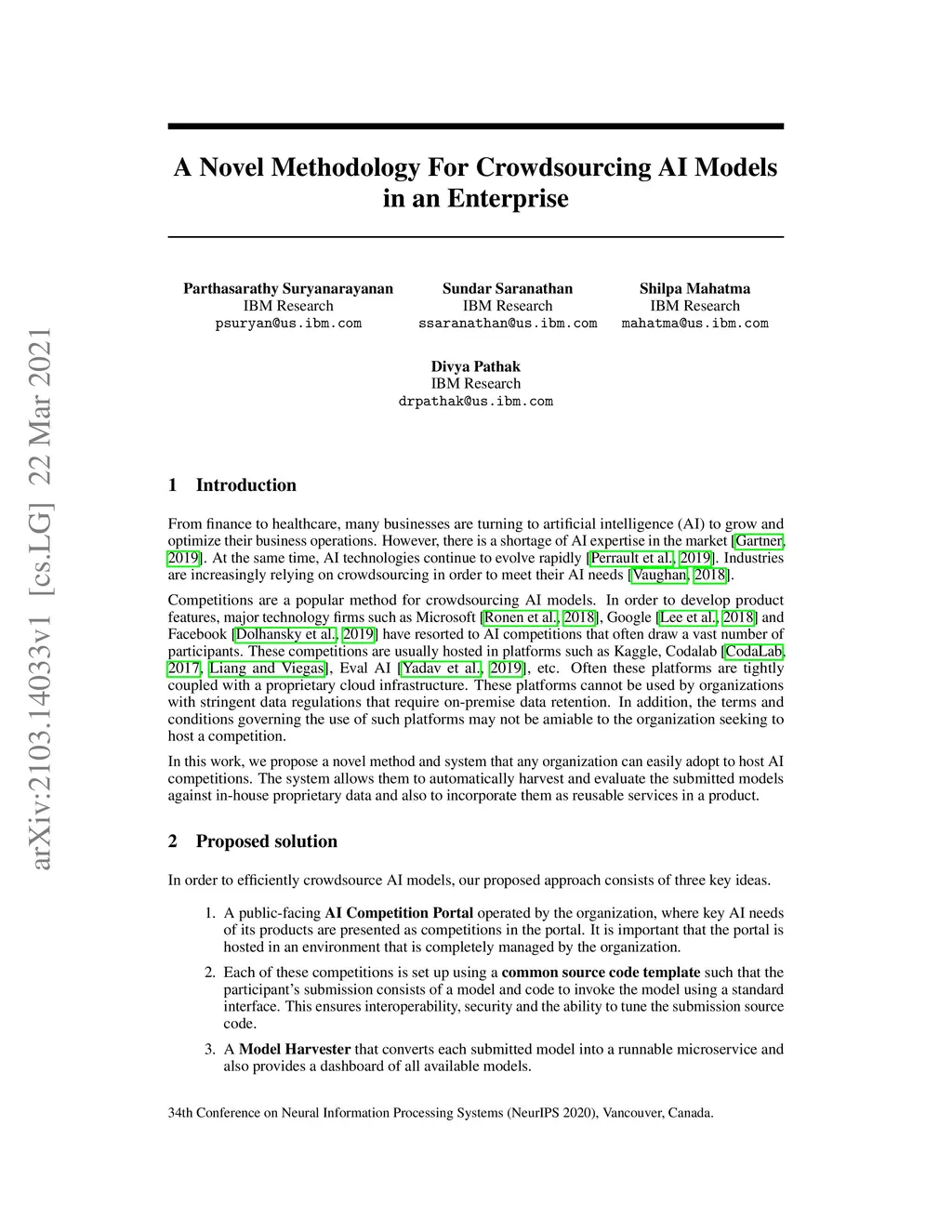 A Novel Methodology For Crowdsourcing AI Models in an Enterprise