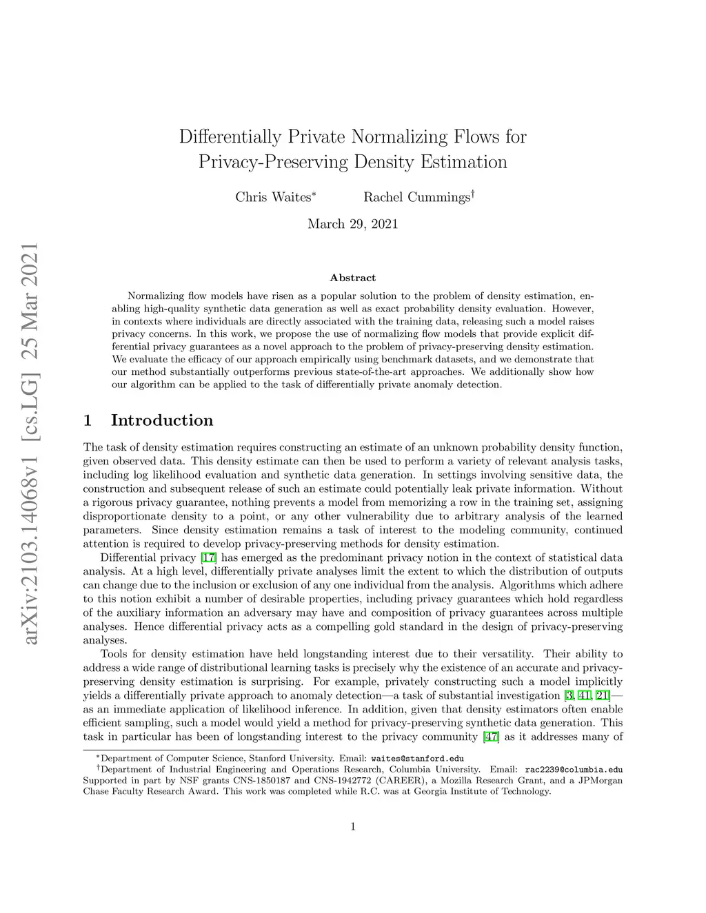 Differentially Private Normalizing Flows for Privacy-Preserving Density