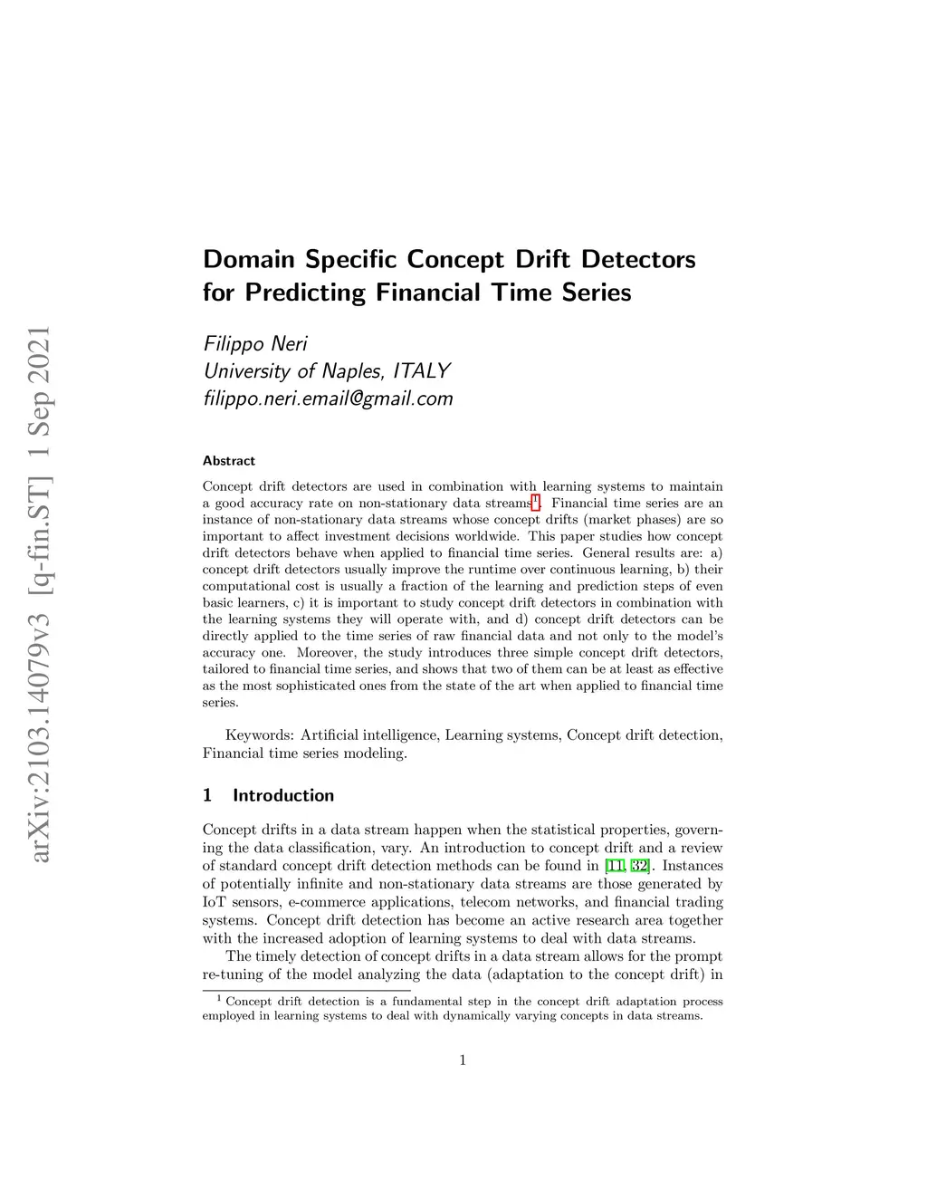 Domain Specific Concept Drift Detectors for Predicting Financial Time