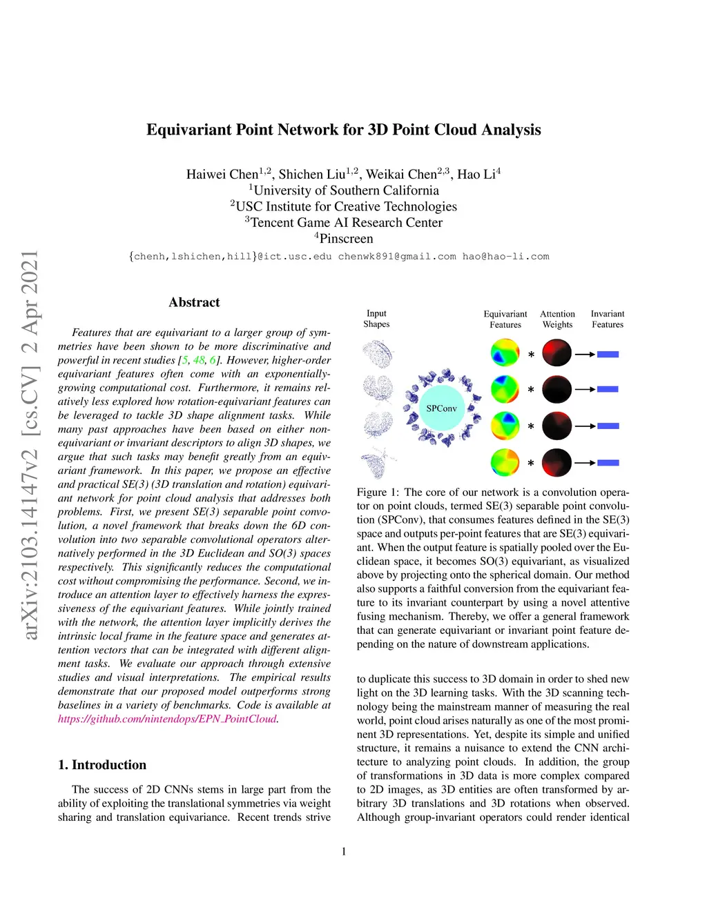 Equivariant Point Network for 3D Point Cloud Analysis