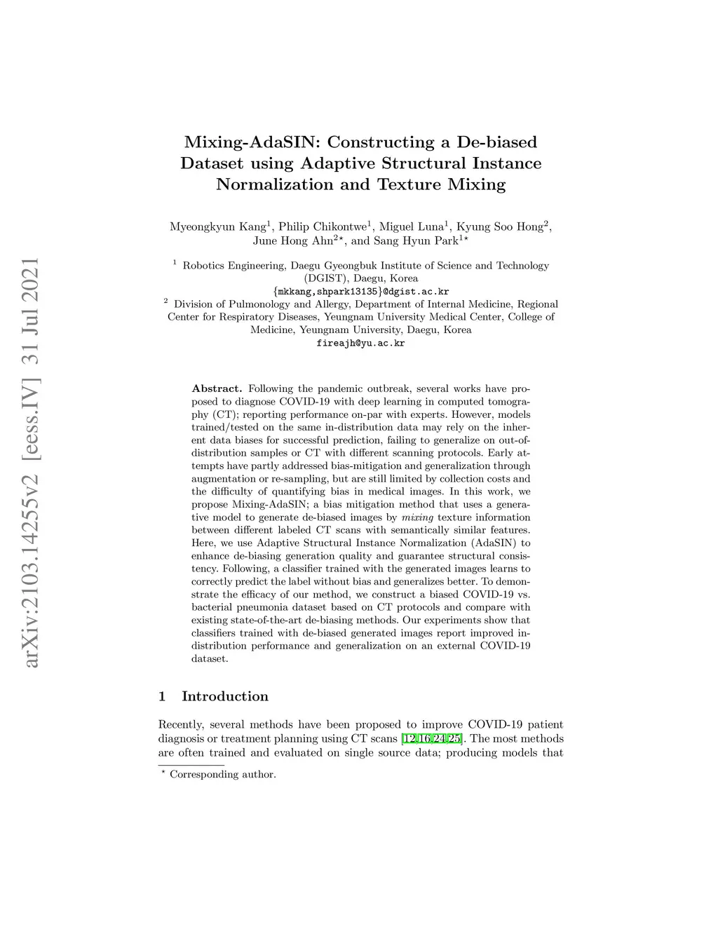 Mixing-AdaSIN: Constructing a De-biased Dataset using Adaptive