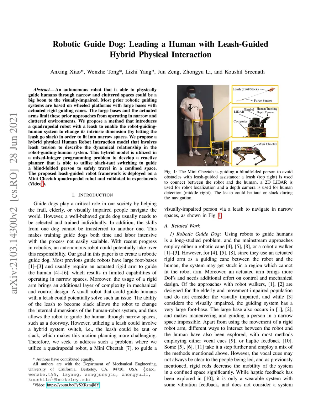 Robotic Guide Dog: Leading a Human with Leash-Guided Hybrid Physical