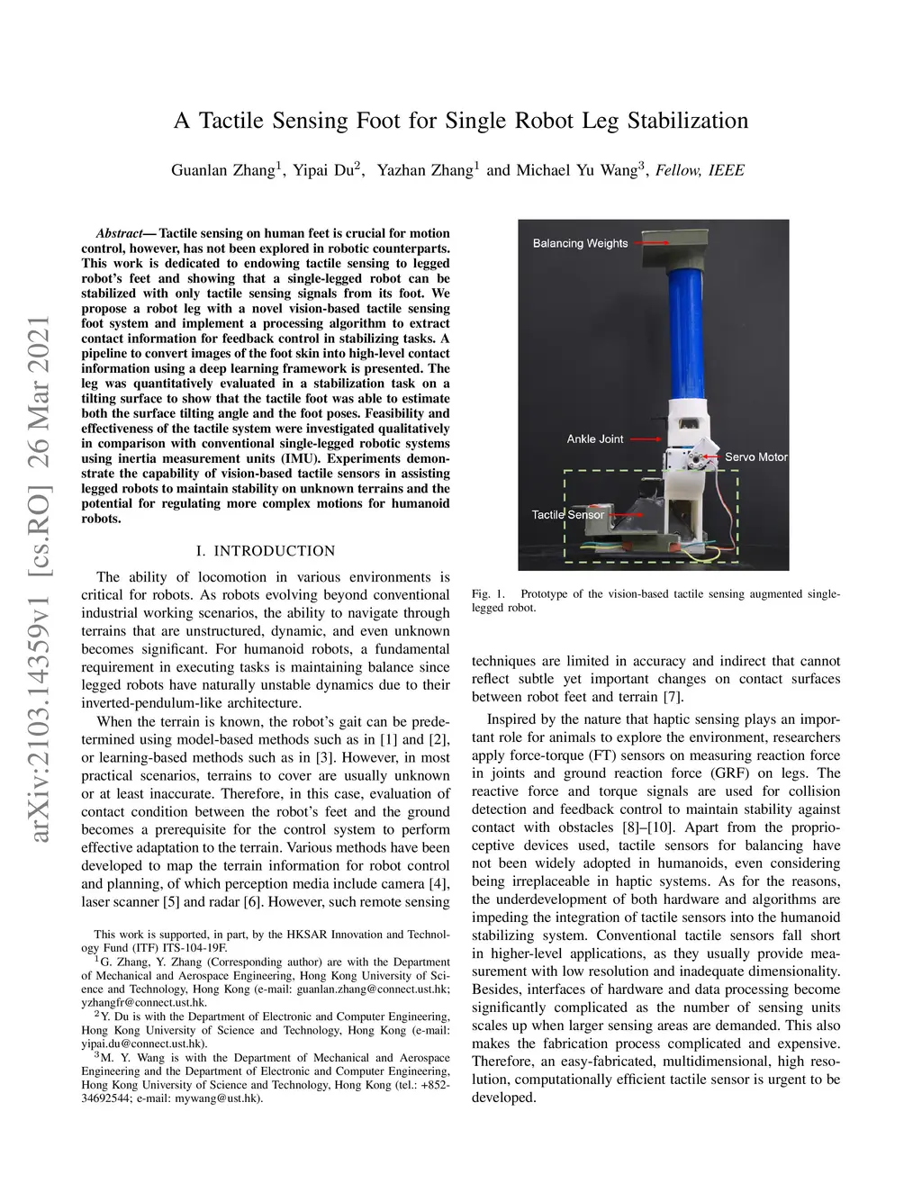 A Tactile Sensing Foot for Single Robot Leg Stabilization