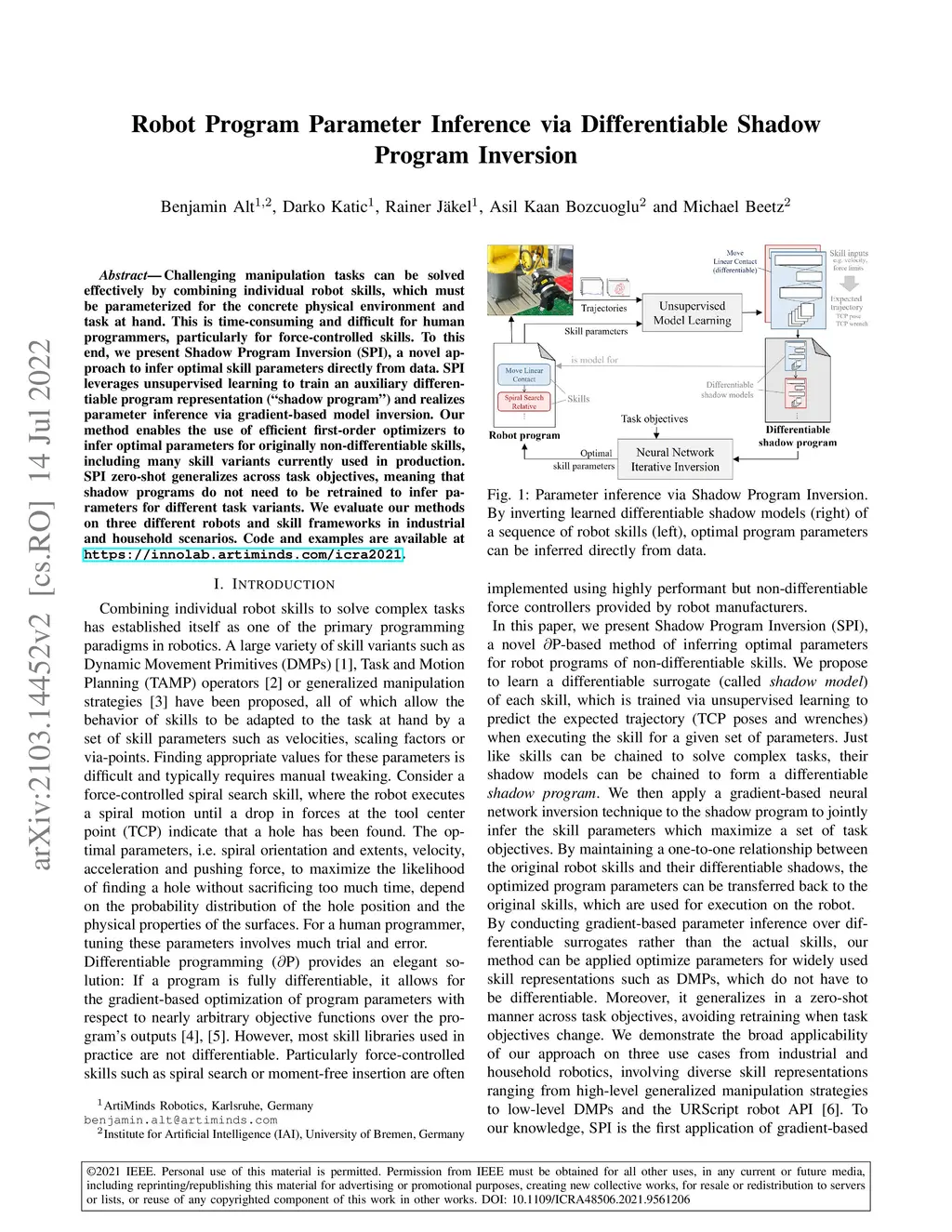 Challenging manipulation tasks can be solved effectively by combining individual robot skills, which must be parameterized for the concrete physical environment and task at hand. This is time-consuming and difficult for human programmers, particularly for force-controlled skills. To this end, we present Shadow Program Inversion (SPI), a novel approach to infer optimal skill parameters directly from data. SPI leverages unsupervised learning to train an auxiliary differentiable program representation ("shadow program") and realizes parameter inference via gradient-based model inversion. Our method enables the use of efficient first-order optimizers to infer optimal parameters for originally non-differentiable skills, including many skill variants currently used in production. SPI zero-shot generalizes across task objectives, meaning that shadow programs do not need to be retrained to infer parameters for different task variants. We evaluate our methods on three different robots and skill frameworks in industrial and household scenarios. Code and examples are available at https://innolab.artiminds.com/icra2021.