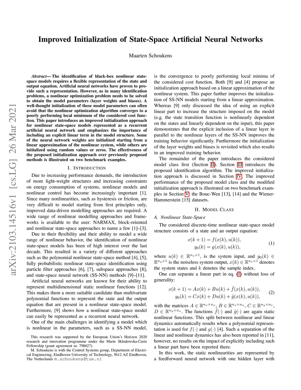 Improved Initialization of State-Space Artificial Neural Networks