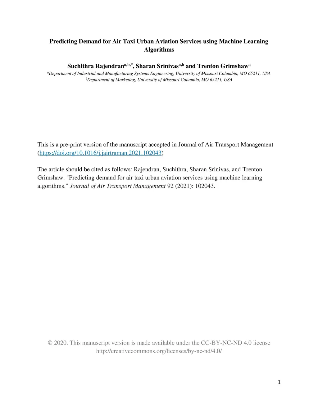 Journal of Air Transport Management (J Air Transp Manag), 2021