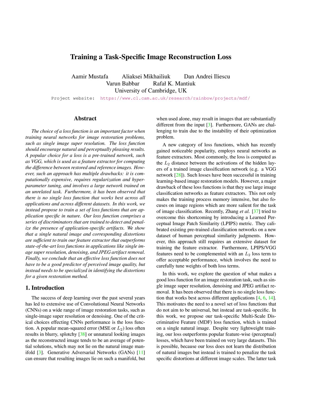 The choice of a loss function is an important factor when training neural networks for image restoration problems, such as single image super resolution. The loss function should encourage natural and perceptually pleasing results. A popular choice for a loss is a pre-trained network, such as VGG, which is used as a feature extractor for computing the difference between restored and reference images. However, such an approach has multiple drawbacks: it is computationally expensive, requires regularization and hyper-parameter tuning, and involves a large network trained on an unrelated task. Furthermore, it has been observed that there is no single loss function that works best across all applications and across different datasets. In this work, we instead propose to train a set of loss functions that are application specific in nature. Our loss function comprises a series of discriminators that are trained to detect and penalize the presence of application-specific artifacts. We show that a single natural image and corresponding distortions are sufficient to train our feature extractor that outperforms state-of-the-art loss functions in applications like single image super resolution, denoising, and JPEG artifact removal. Finally, we conclude that an effective loss function does not have to be a good predictor of perceived image quality, but instead needs to be specialized in identifying the distortions for a given restoration method.