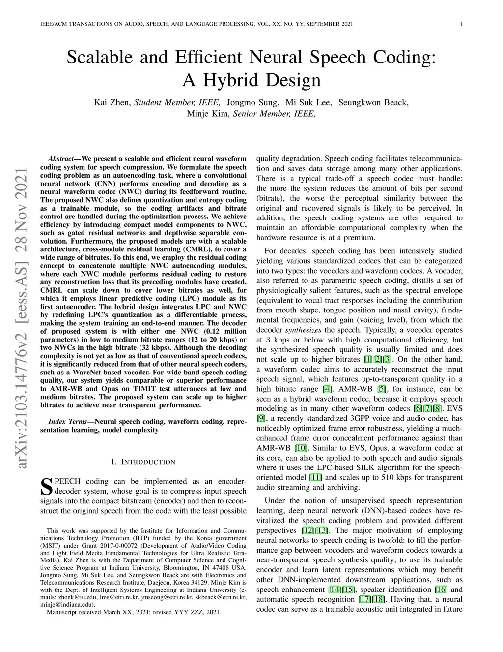 Scalable and Efficient Neural Speech Coding: A Hybrid Design