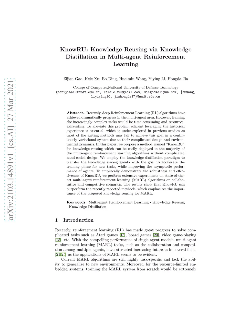KnowRU: Knowledge Reusing via Knowledge Distillation in Multi-agent