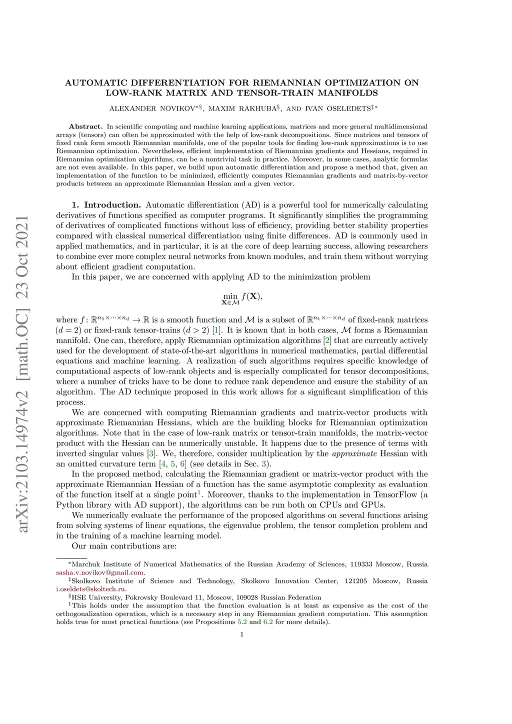 Automatic differentiation for Riemannian optimization on low-rank matrix