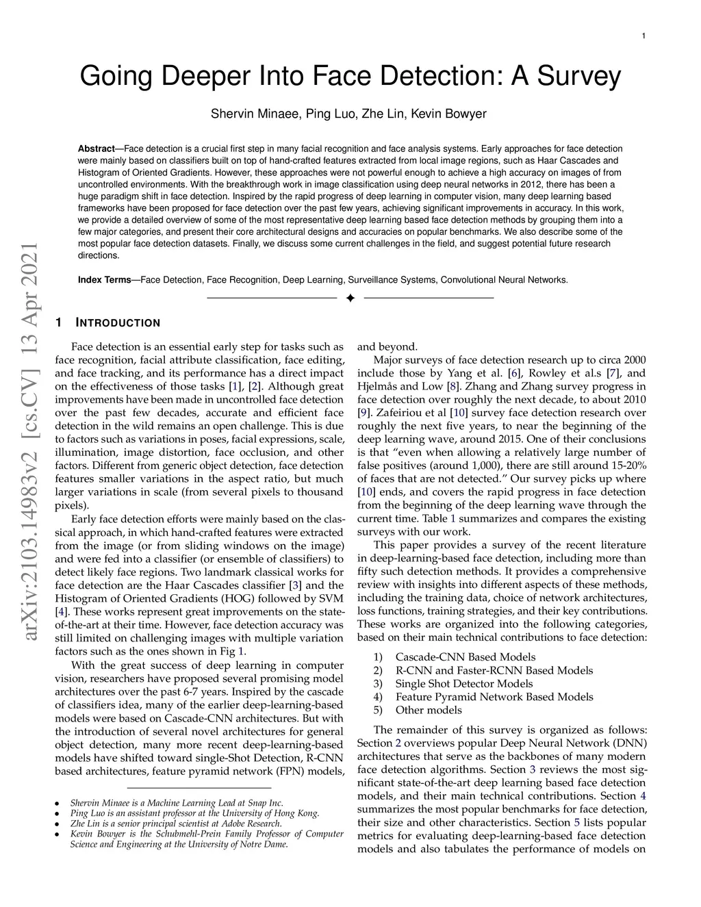 Face detection is a crucial first step in many facial recognition and face analysis systems. Early approaches for face detection were mainly based on classifiers built on top of hand-crafted features extracted from local image regions, such as Haar Cascades and Histogram of Oriented Gradients. However, these approaches were not powerful enough to achieve a high accuracy on images of from uncontrolled environments. With the breakthrough work in image classification using deep neural networks in 2012, there has been a huge paradigm shift in face detection. Inspired by the rapid progress of deep learning in computer vision, many deep learning based frameworks have been proposed for face detection over the past few years, achieving significant improvements in accuracy. In this work, we provide a detailed overview of some of the most representative deep learning based face detection methods by grouping them into a few major categories, and present their core architectural designs and accuracies on popular benchmarks. We also describe some of the most popular face detection datasets. Finally, we discuss some current challenges in the field, and suggest potential future research directions.