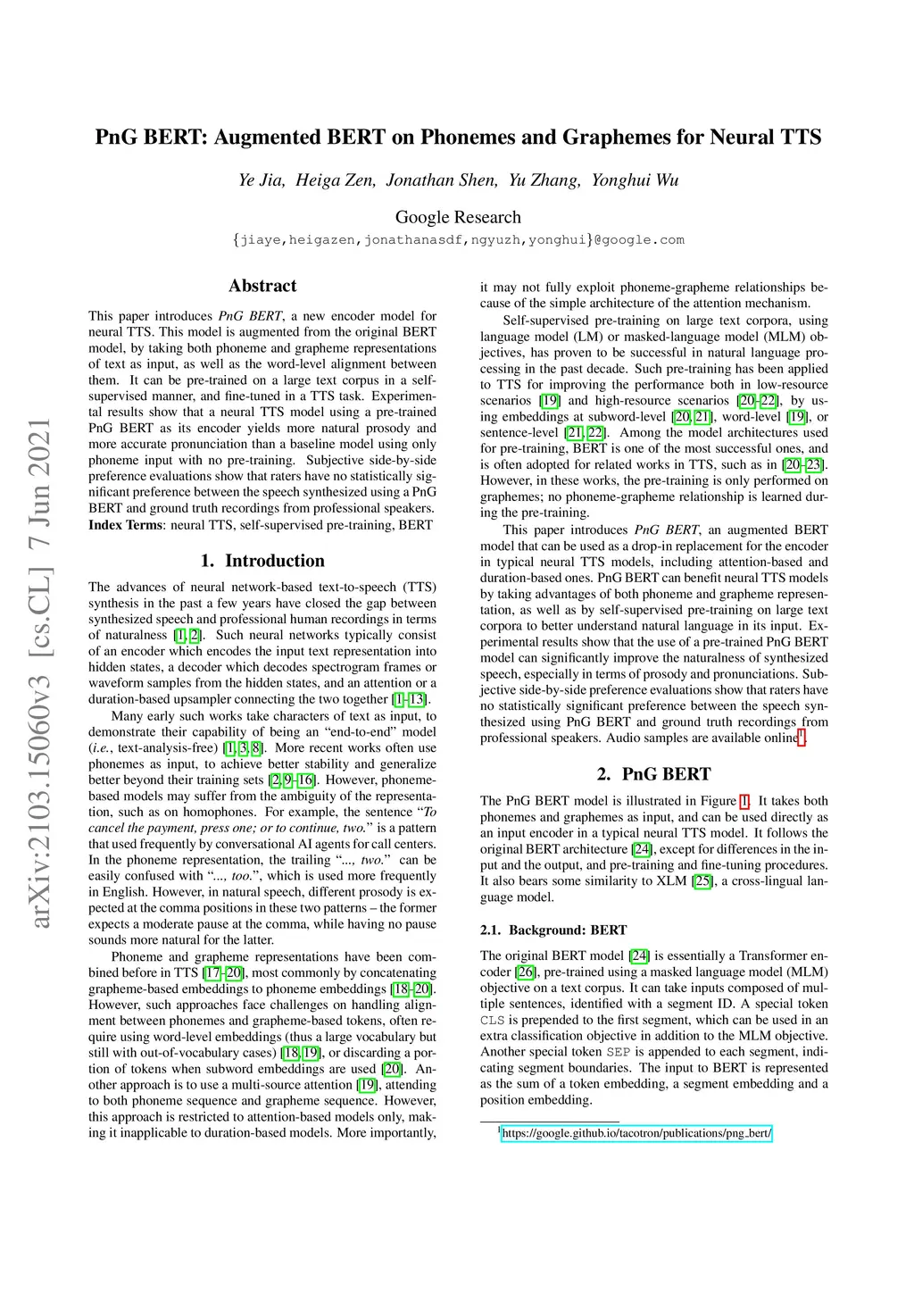 PnG BERT: Augmented BERT on Phonemes and Graphemes for Neural TTS