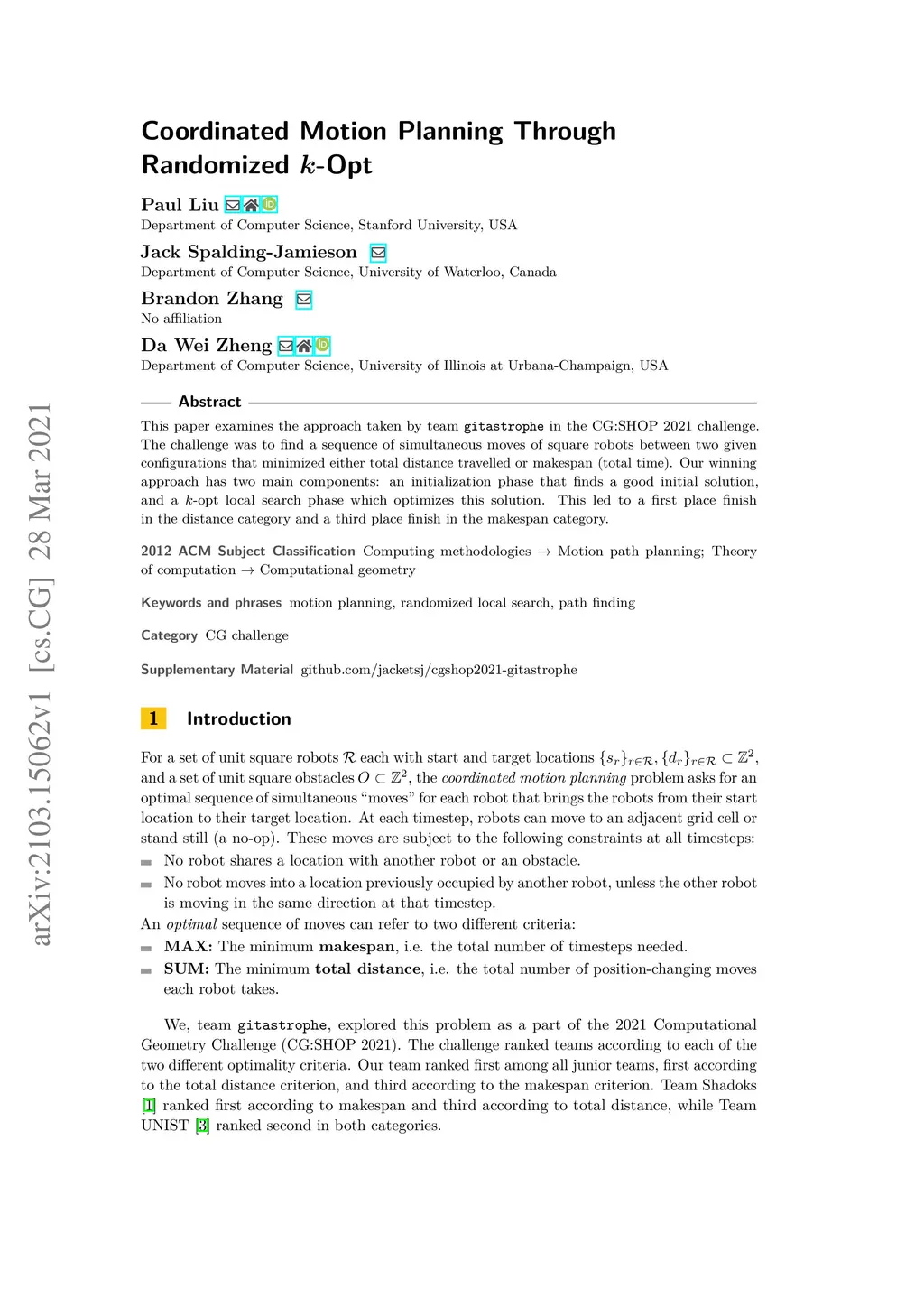 This paper examines the approach taken by team gitastrophe in the CG:SHOP 2021 challenge. The challenge was to find a sequence of simultaneous moves of square robots between two given configurations that minimized either total distance travelled or makespan (total time). Our winning approach has two main components: an initialization phase that finds a good initial solution, and a -opt local search phase which optimizes this solution. This led to a first place finish in the distance category and a third place finish in the makespan category.