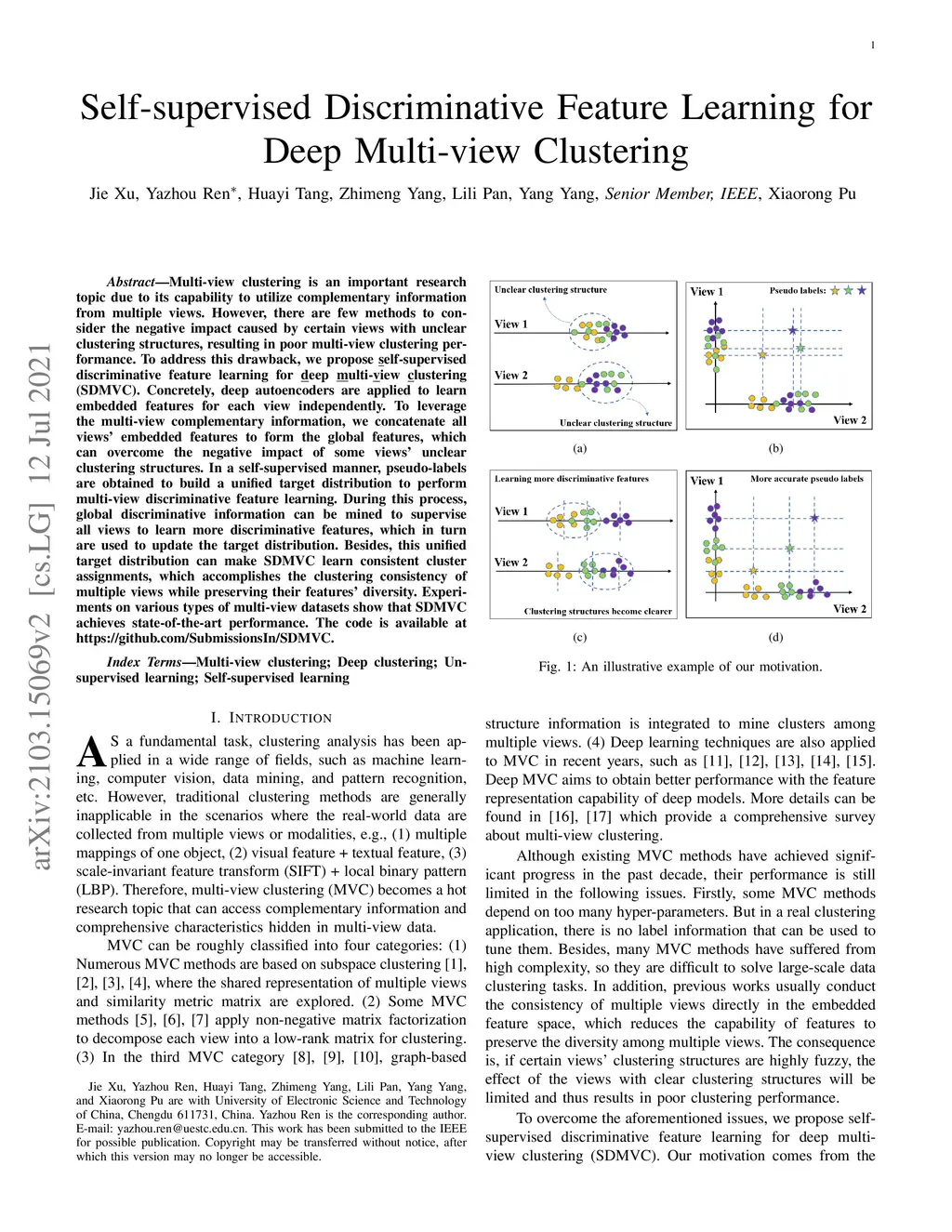 Self-Supervised Discriminative Feature Learning for Deep Multi-View Clustering
