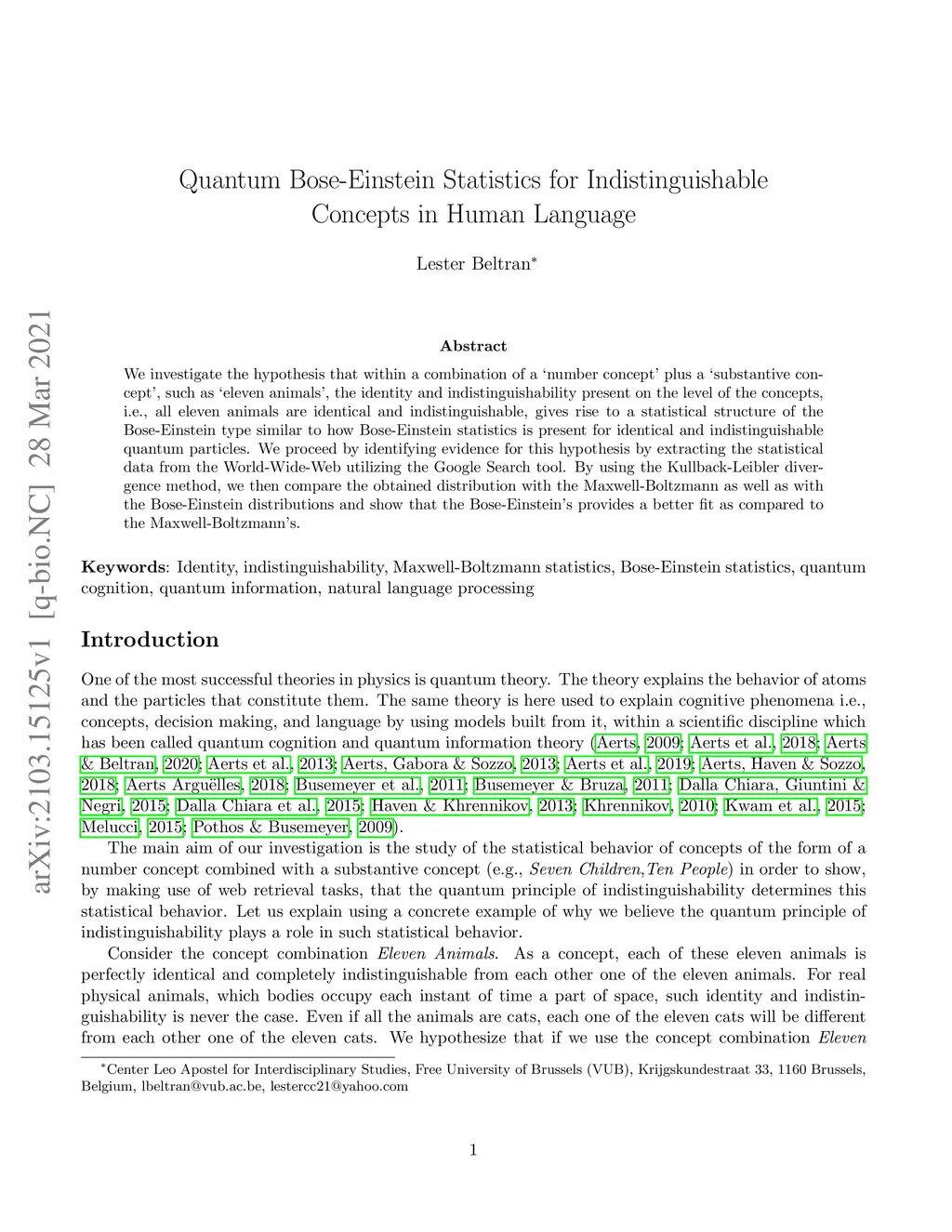 We investigate the hypothesis that within a combination of a ñumber concept' plus a 'substantive concept', such as éleven animals,' the identity and indistinguishability present on the level of the concepts, i.e., all eleven animals are identical and indistinguishable, gives rise to a statistical structure of the Bose-Einstein type similar to how Bose-Einstein statistics is present for identical and indistinguishable quantum particles. We proceed by identifying evidence for this hypothesis by extracting the statistical data from the World-Wide-Web utilizing the Google Search tool. By using the Kullback-Leibler divergence method, we then compare the obtained distribution with the Maxwell-Boltzmann as well as with the Bose-Einstein distributions and show that the Bose-Einstein's provides a better fit as compared to the Maxwell-Boltzmanns.