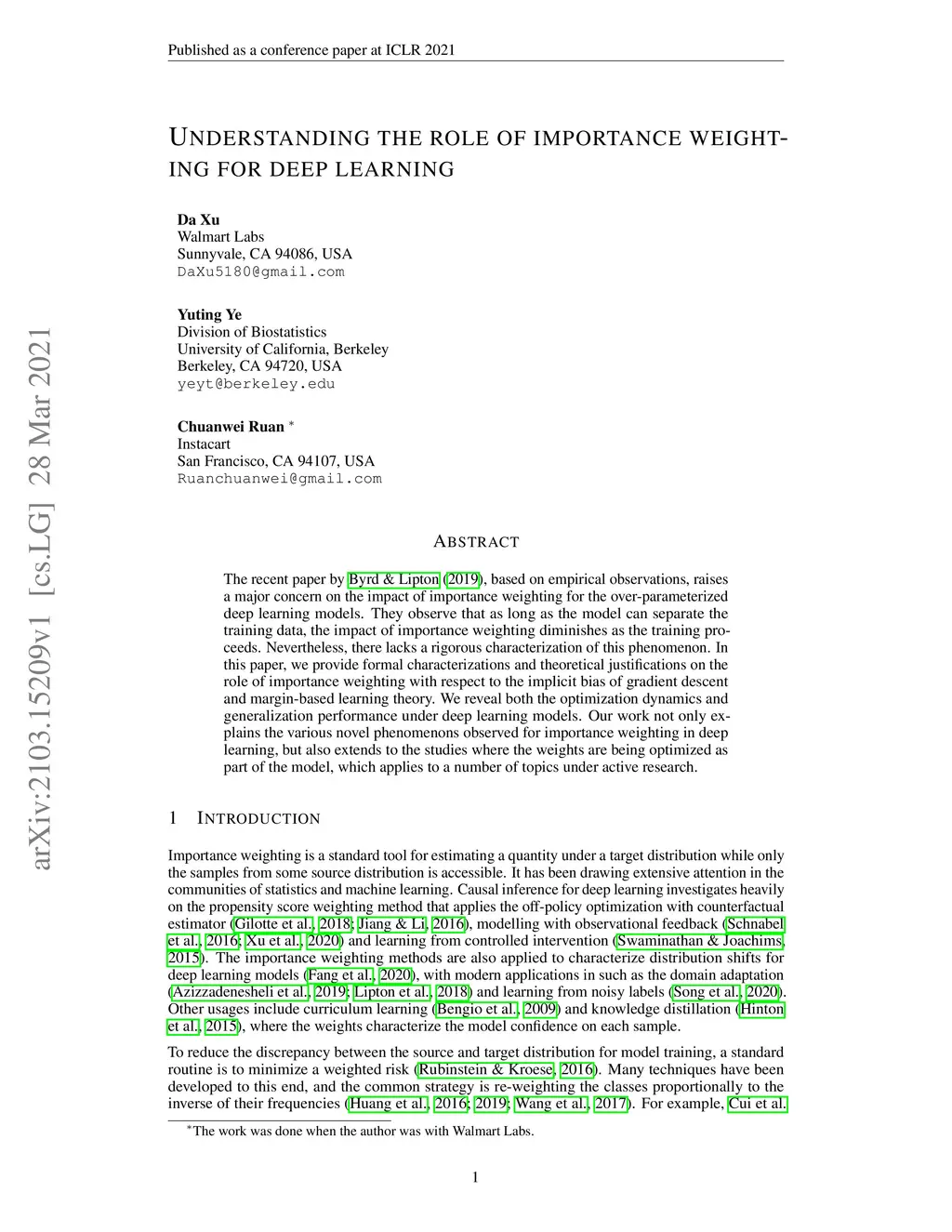 Understanding the role of importance weighting for deep learning