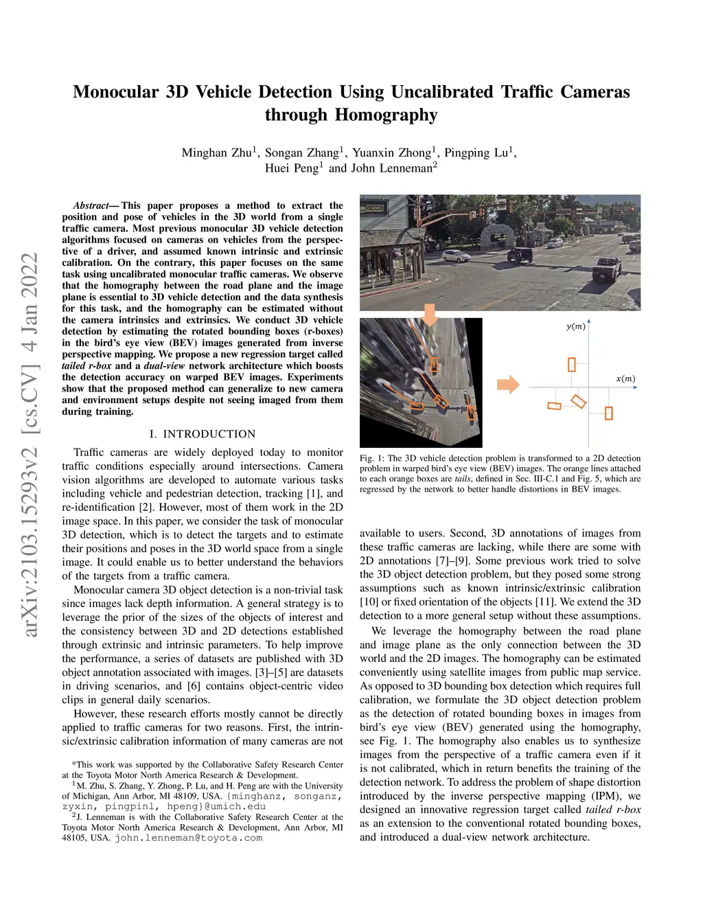 Monocular 3D Vehicle Detection Using Uncalibrated Traffic Cameras
