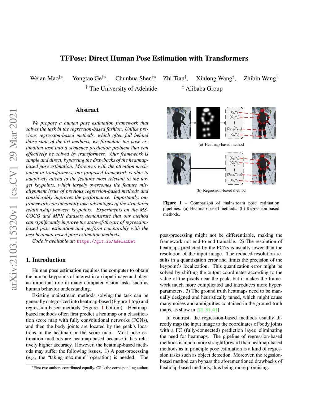 We propose a human pose estimation framework that solves the task in the regression-based fashion. Unlike previous regression-based methods, which often fall behind those state-of-the-art methods, we formulate the pose estimation task into a sequence prediction problem that can effectively be solved by transformers. Our framework is simple and direct, bypassing the drawbacks of the heatmap-based pose estimation. Moreover, with the attention mechanism in transformers, our proposed framework is able to adaptively attend to the features most relevant to the target keypoints, which largely overcomes the feature misalignment issue of previous regression-based methods and considerably improves the performance. Importantly, our framework can inherently take advantages of the structured relationship between keypoints. Experiments on the MS-COCO and MPII datasets demonstrate that our method can significantly improve the state-of-the-art of regression-based pose estimation and perform comparably with the best heatmap-based pose estimation methods.