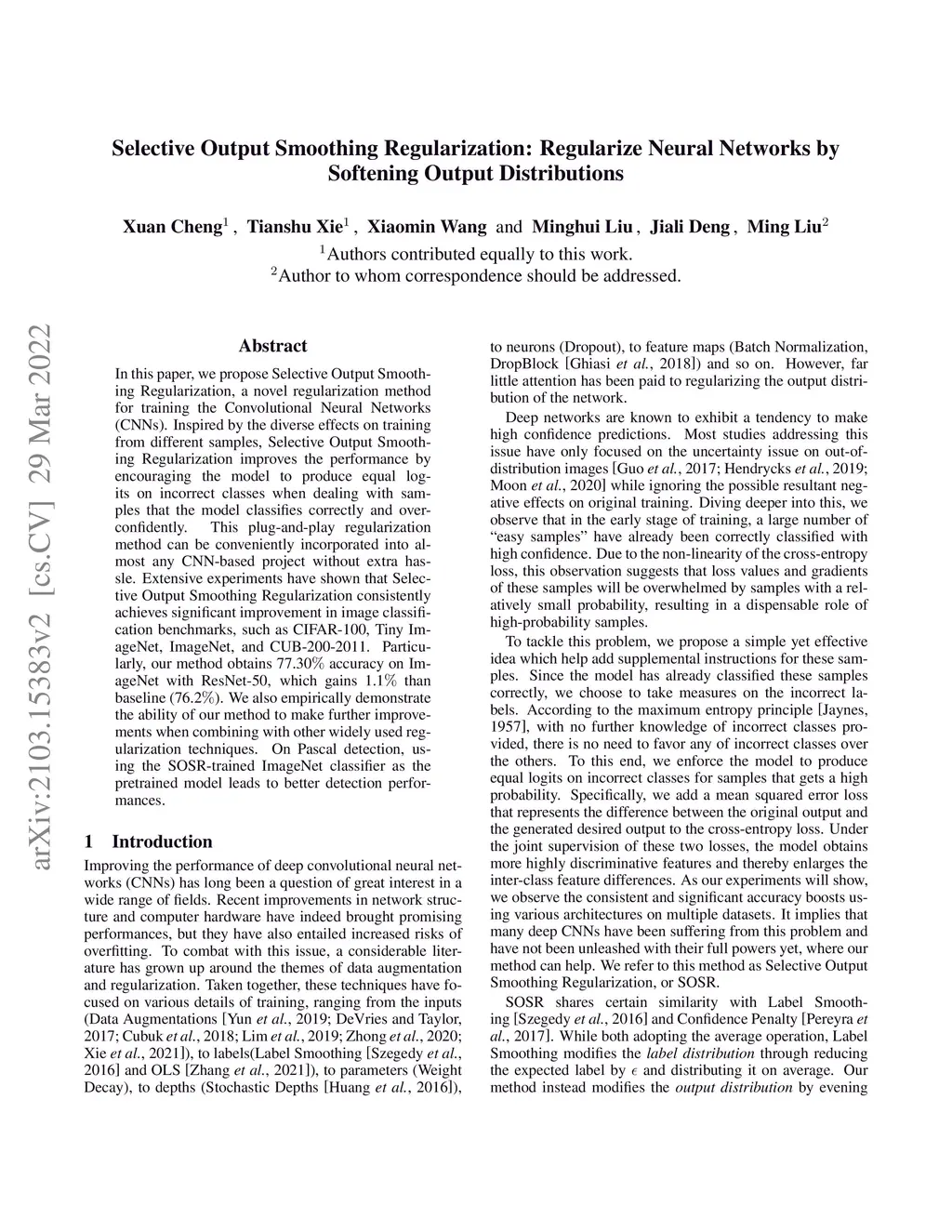 Selective Output Smoothing Regularization: Regularize Neural Networks by
