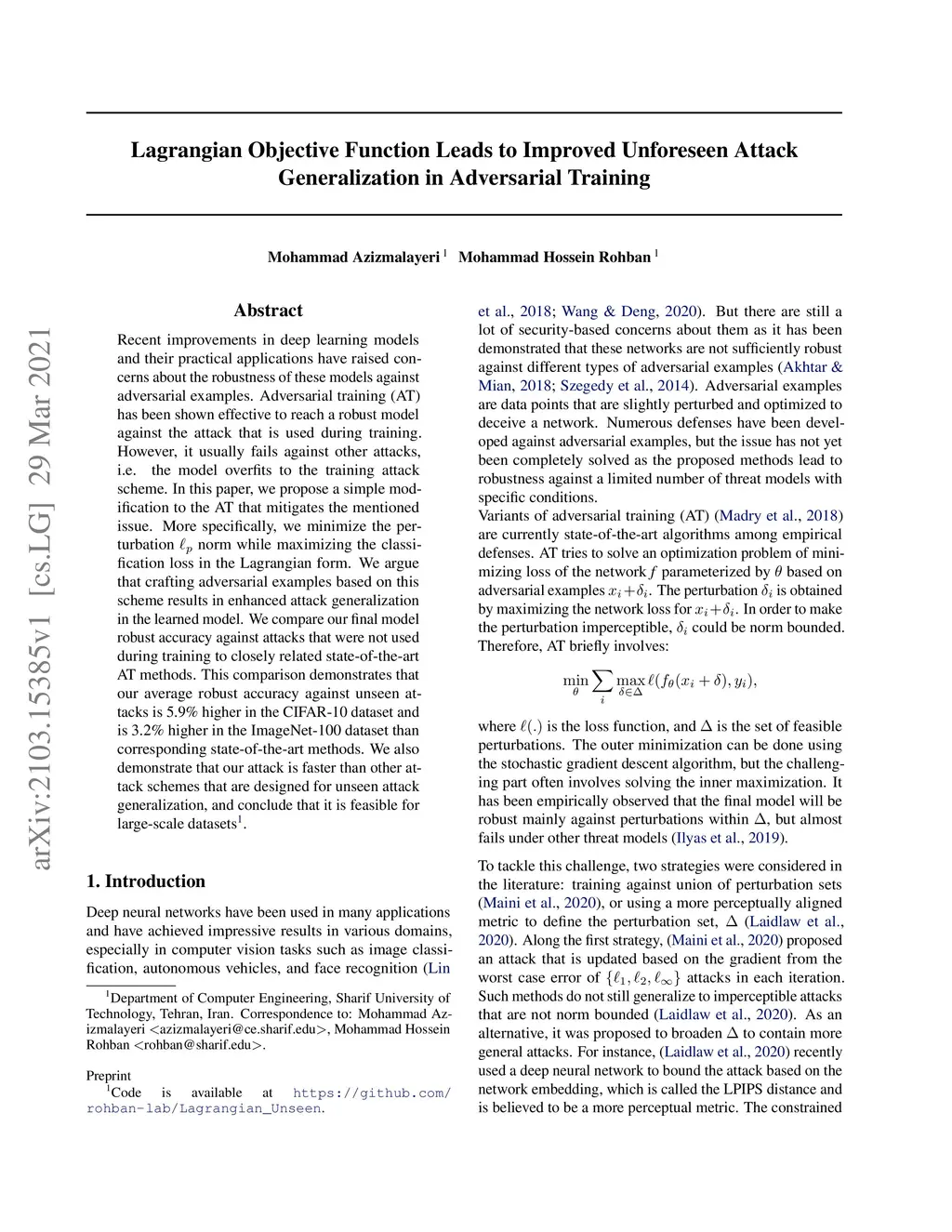 Lagrangian Objective Function Leads to Improved Unforeseen Attack